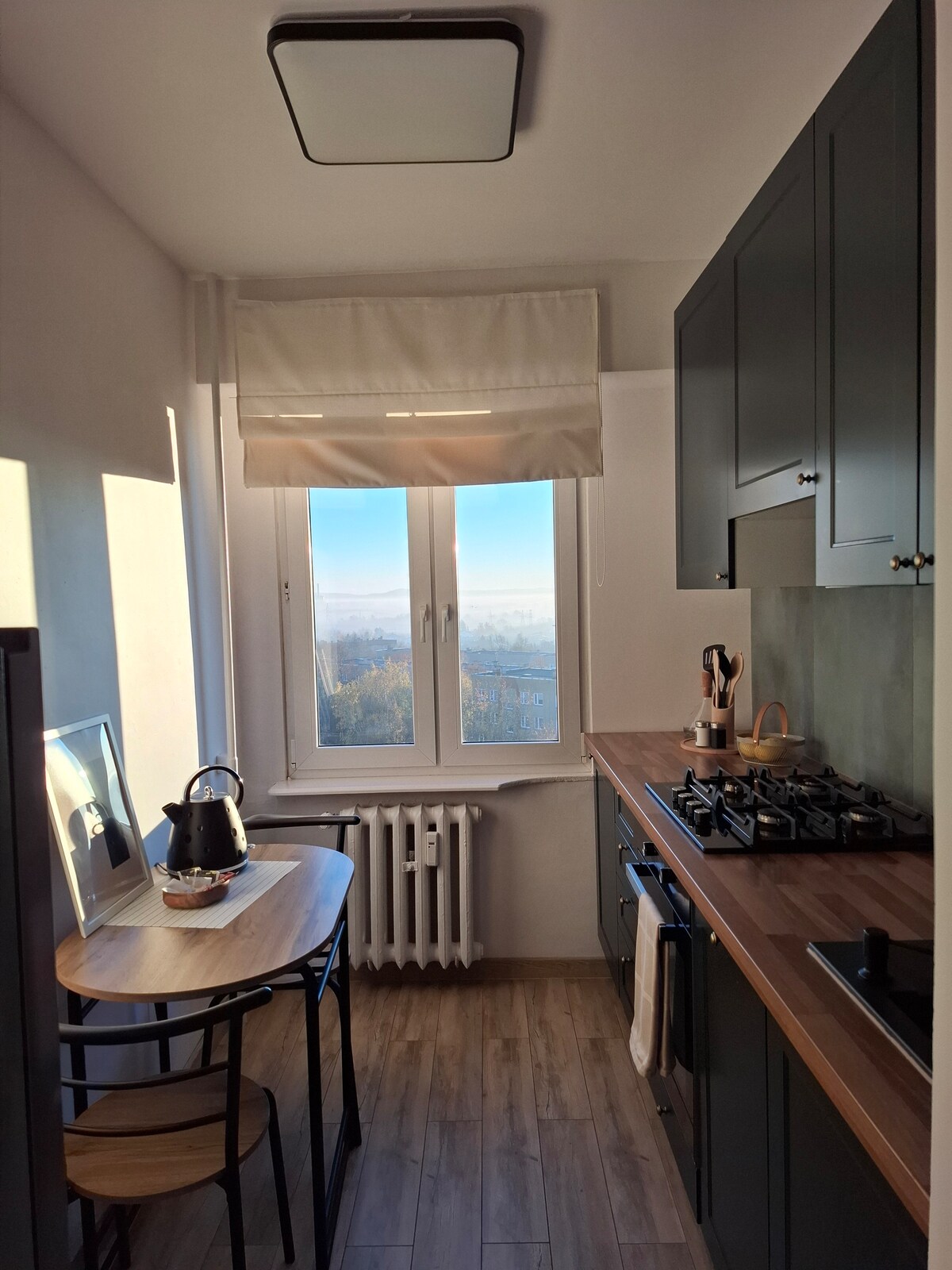 Eine große Wohnung im Zentrum, aber in einem ruhigeren Teil mit zwei großen Schlafzimmern( in jedem Bett 200 x 160), einem großen Wohnzimmer mit einer ausklappbaren Ecke, einem 55-Zoll-Smart-TV mit WLAN + TV und einem Balkon mit Blick auf die Skyline der Stadt und Jasna Góra. Ein Badezimmer mit einer Badewanne oder einer Dusche mit Handtüchern und einem Trockner. Voll ausgestattete Küche ( großer Kühlschrank, Herd mit Backofen, Spülmaschine, Wasserkocher, Wasserkrug, Toaster, Geschirr, alle Kochutensilien).