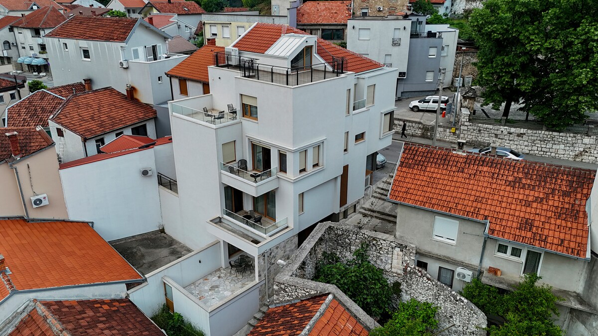 In einer modernen und dennoch charmanten Villa in der Altstadt von Mostar findest du diese einzigartige Unterkunft mit einer geräumigen Terrasse mit schönem Blick auf den Berg und den Fluss. Innerhalb weniger Gehminuten erreichst du den Kern der Altstadt von Mostar. In der Nähe der Villa findest du auch authentische Bäckereien, um die obligatorische bosnische Pita zu holen, und gemütliche Cafés, um deinen Kaffee zu genießen. Herzlich willkommen!