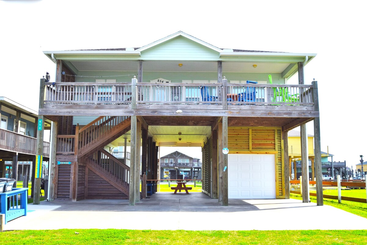 Beaches & Dreams Beach House, Crystal Beach (in der Nähe von Galveston) ~ 7 Personen TAUCHBECKEN*/WHIRLPOOL ~ Platz für 14 Personen ~ 5 Minuten zu Fuß bis zum Strand oder mit dem Auto, um direkt am Sand zu parken ~ Feuerwerk/Lagerfeuer OK @ the Beach** ~ Hinterhof-Spaß: KANALANGELN + Tiki-Bar + TV + Holzkohlegrill ~ 2 Balkone, um den Blick auf den Sonnenaufgang und die Meeresbrise zu genießen (versperrter Meerblick) ~Geschlossene Wohnanlage. Sicherheit ist unsere Priorität. *Tauchbecken Ambient/Min. Temp = 75F **Auf der Website von Galveston County findest du Einschränkungen/Verbote.