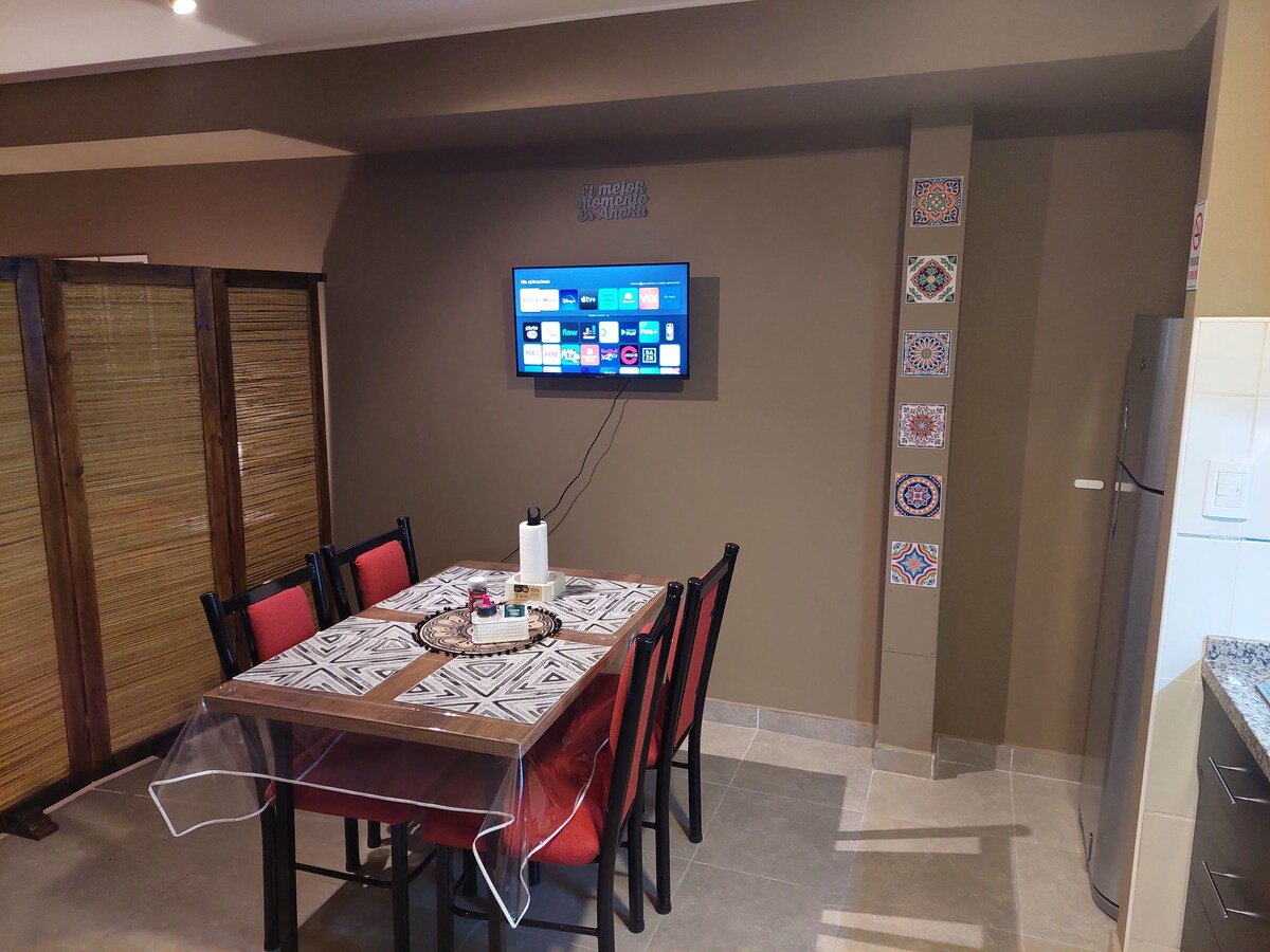 5 Minuten vom Hauptplatz von Godoy Cruz 🏙 und den wichtigsten Großhandels-Supermärkten von Mendoza und dem Jumbo-Supermarkt entfernt. 🛒 Die Unterkunft verfügt über ein neues Queen-Size-Bettgestell mit Federn, ein Schlafsofa 🛋 mit einem unteren Bett, das in ein Schiffbett umgewandelt werden kann (für Kinder oder Erwachsene mit geringem Gewicht), mit seinen Laken🛌. Küche mit Mikrowelle, Herd, Toaster und Wasserkocher. Alles neu! 🍳🍽🥘🥕🥑 Wir begrüßen Sie mit einigen Aufmerksamkeiten. Wir freuen uns auf Sie! „Der städtische Kaktus“ 🌵