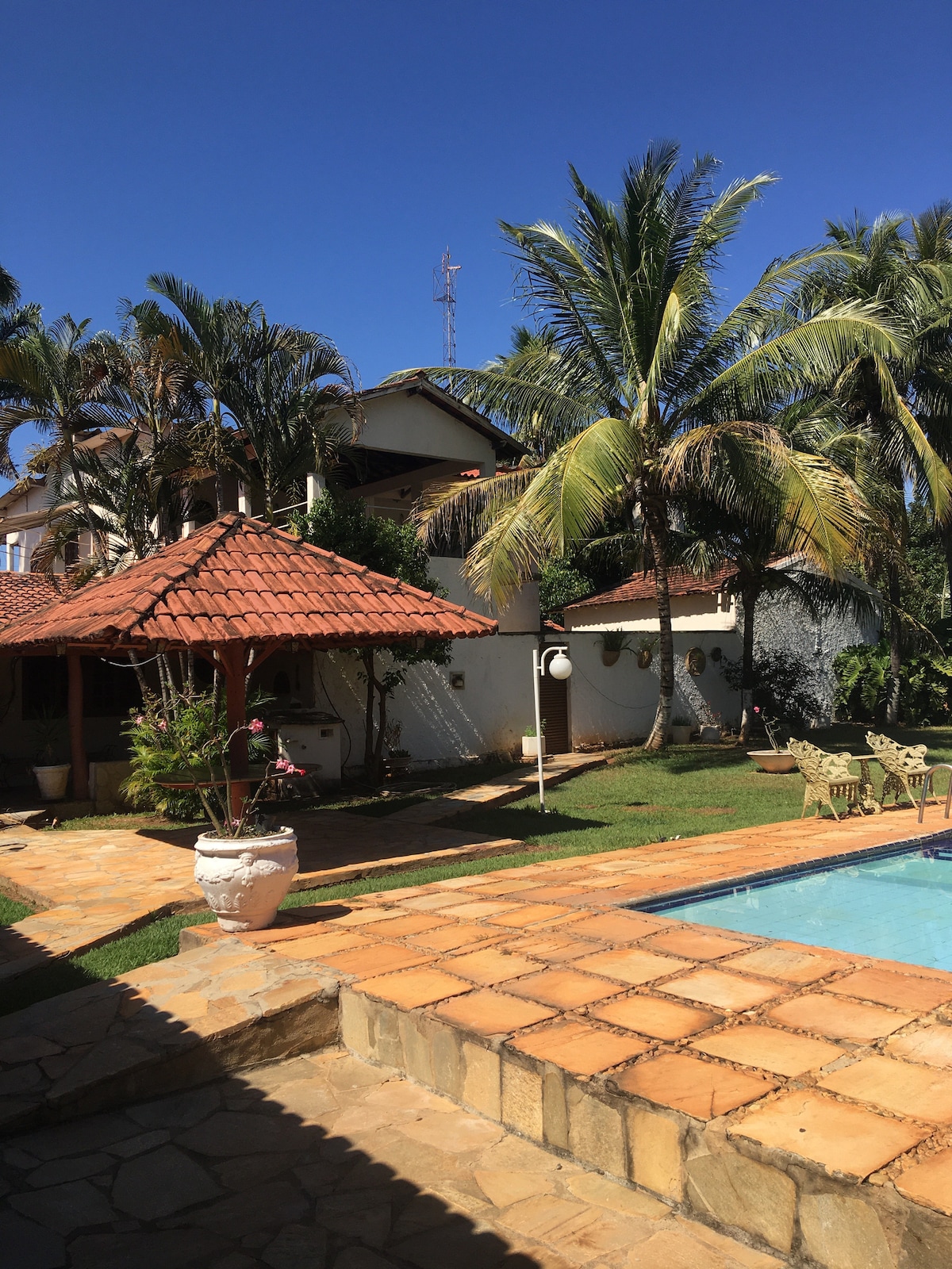 Du wirst die stilvolle Einrichtung dieser charmanten Unterkunft lieben. Chácara 10 km vom Zentrum von Goianésia entfernt. Das große Haus verfügt über ein Schlafzimmer, ein Wohnzimmer, eine Küche und ein Badezimmer. PLATZ FÜR BIS ZU 20 PERSONEN. Chácara verfügt über einen Swimmingpool, Grill, Gefrierschrank, Dämme, Sandplatz für Volleyball, Campingplatz und vieles mehr! @chacaradowaltao