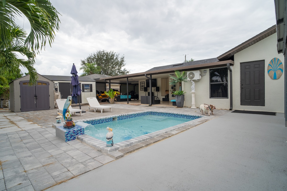 Discover the perfect blend of tranquility and convenience at our cozy canalside Airbnb. This three-bedroom and two-bathroom home with room for six up to eight guests, is situated just a short drive from downtown, the beach, the mall, I-75, and local shops, this family-friendly retreat offers the ideal escape. Enjoy the peaceful canal views, or explore the vibrant city life. Your home away from home awaits.