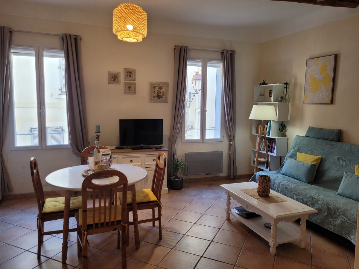 **KEINE KLIMAANLAGE** Wohnung im Herzen der Altstadt von Grasse, ideal gelegen in der Nähe von Parfümerien, Kunstgalerien, Restaurants, Bars und Geschäften. Genießen Sie ein Zimmer, das in ein Kino mit Bild- und High-End-Ausstattung sowie Hotelbetten (Queen-Size-Bett) umgewandelt wurde. Perfekt zum Entspannen nach einem Tag voller Entdeckungen. Komfort, Charme und Unterhaltung sind an diesem einzigartigen Ort garantiert. Zugang zu +100 Blu-rays, Netflix & Disney+ 4K. Machen Sie Ihre Popcorn!
