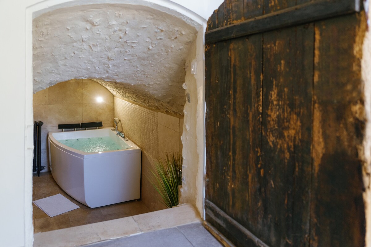 Ideale Unterkunft für Winter und Sommer Sauna und private Balneotherapie (innen) Der Wellnessbereich wurde unter dem Stein an der Stelle eines alten Weinkellers geschaffen. Ein Raum wurde dem Entspannungsbereich gewidmet, mit Lichttherapie, Sauna und zwei großen Hockern zum Entspannen. Die Sauna ist eine echte nordische Sauna mit einem heißen Steinofen im Inneren. Sie haben auch im Wohnzimmer einen schönen Holzofen für die Winternächte.