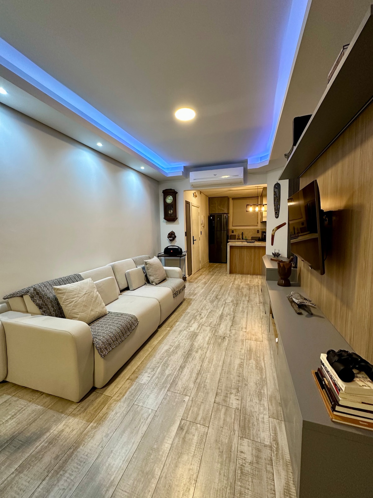 This 55m² apartment is ideal for couples and executives on business trips. It has everything you'd expect from an apartment: practicality and technology. For those coming to spend New Year's Eve in Santos, you can enjoy the festivities without even leaving the building. From the pool area, you can enjoy the sea view, the fireworks, and the city's festive atmosphere without having to deal with traffic, crowds, or a tiring commute after the fireworks.