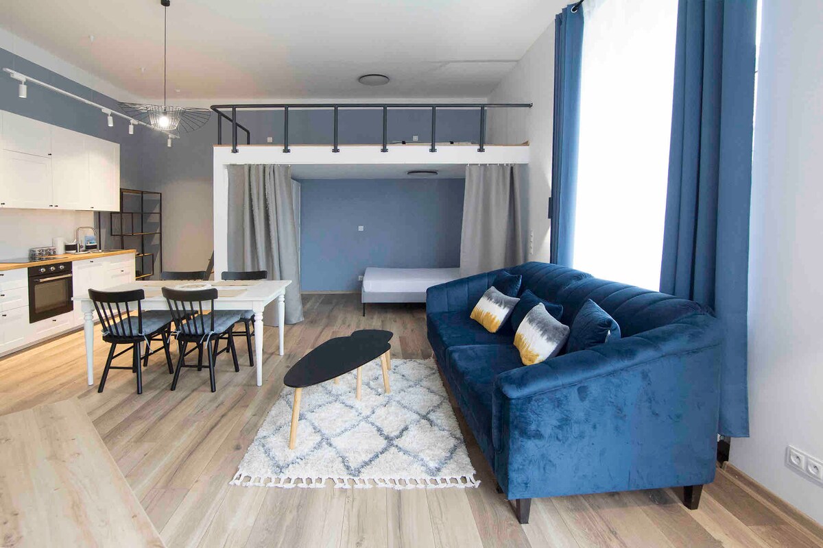 Willkommen! Ideale Familienwohnung mit Panoramablick auf Gliwice von einer Terrasse, die perfekt für Kaffee ist. Kontaktiere uns auf Airbnb, um einen Rabatt zu erhalten. Highlights: - Bester Blick auf Gliwice auf Airbnb (fast 360° Blick auf die Terrasse). - 90 m vom Hauptplatz der Stadt entfernt - 55m², 2. Stock, in gepflegtem Gebäude - 8 Schlafplätze: 2x Schlafzimmer mit Doppelbett, Doppelbett im Zwischengeschoss, klappbares Sofa für zwei Personen. - Voll ausgestattet für längere Aufenthalte: Schreibtisch, Küche, Wäscherei. - Co-Working-Space in der Nähe. Rabatt für Aufenthalte von mehr als 2 Tagen - schreib mir eine Nachricht ❤️