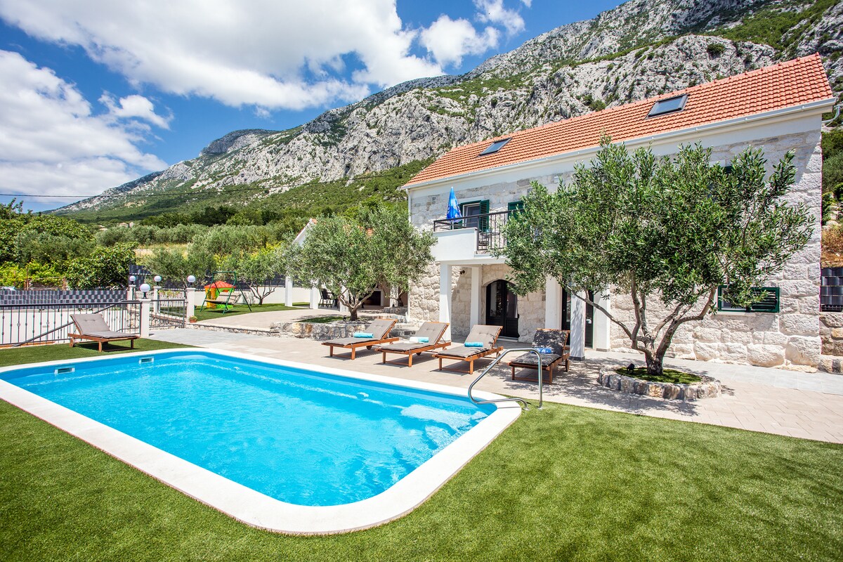 Die Villa Nacle ist eine moderne Privatvilla mit beheiztem Pool im ruhigen Dorf Naklice in der Nähe von Omiš und 7 km von der Adriaküste entfernt. Die Villa ist für bis zu 6 Personen ausgelegt und verfügt über drei klimatisierte Schlafzimmer, geräumige Wohnbereiche und eine wunderschöne Außenterrasse mit Bergblick. In der Nähe von Stränden, Rafting und Zipline am Fluss Cetina gelegen, ist es ideal für Familien und Paare, die Komfort, Privatsphäre und einen aktiven Urlaub in Dalmatien suchen.