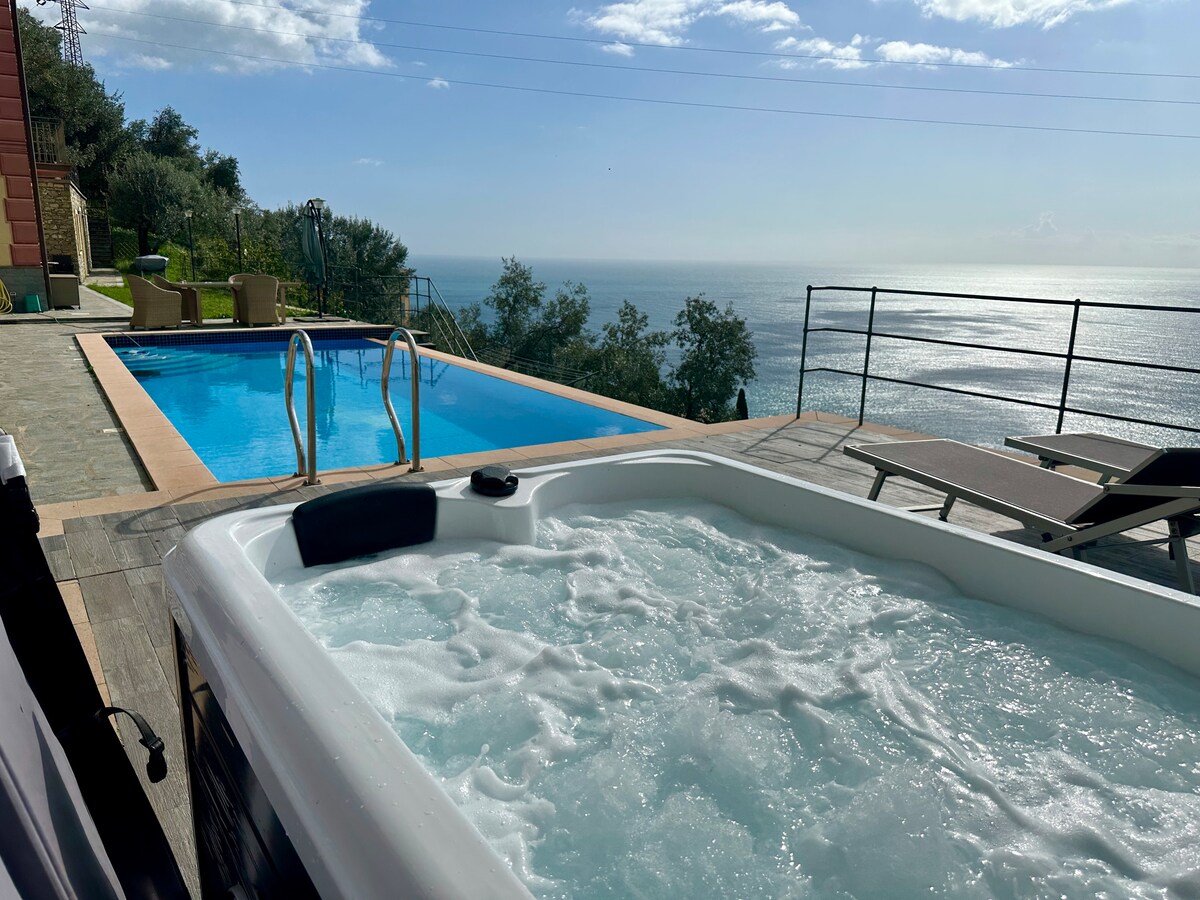 Helle und gemütliche Wohnung, brandneu, mit einer riesigen Terrasse mit Meerblick und einem schönen kleinen Garten mit einem Whirlpool. 2 gemütlich eingerichtete Schlafzimmer mit jeweils einem eigenen Badezimmer, einem Wohnzimmer mit einer voll ausgestatteten Küche und einem Sofa, das zu einem komfortablen Doppelbett werden kann. WLAN, Klimaanlage, Smart-TV und kostenlose Pflegeprodukte. Ein friedlicher und ruhiger Ort, in einer der spektakulärsten Lagen von Riomaggiore und nur 5 Gehminuten vom Stadtzentrum entfernt.
