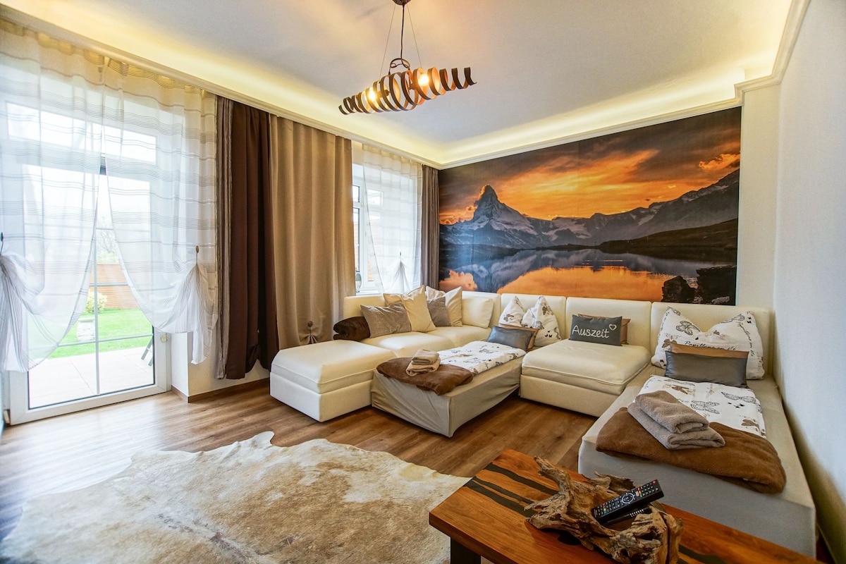 In der Sauna mit grandiosem Bergpanorama kannst du entspannen und anschließend auf dem großzügigen Balkon auf Chill-Möbeln die grandiose Aussicht genießen. Im 2-Zimmer-Appartement findest du alles, was zu einem perfekten Urlaub gehört. Zauber in der hochwertigen Miele-Küche ein leckeres Menü und genieße vor dem Kamin einen guten Tropfen Wein. Erholsamen Schlaf findest du im Echtholz-Zirbenbett mit hochwertigen Matratzen. Wenn du einen ruhigen Platz suchst bist du hier genau richtig!