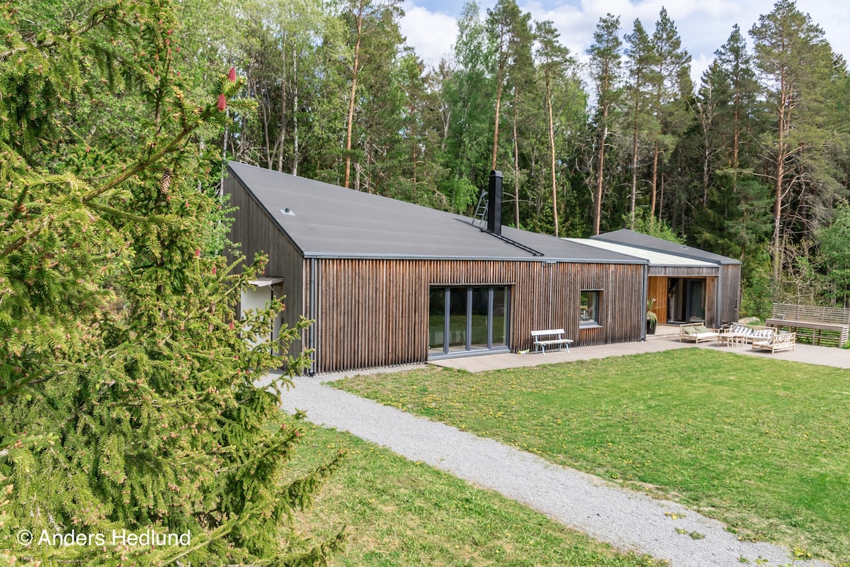 Willkommen in dieser fantastischen Oase 8 km von der Stadt Uppsala und nur 30 Minuten vom Flughafen Stockholm Arlanda entfernt. Hier wohnen Sie in einem neu erbauten Haus mit 95 m² und Platz für 5 Personen, nur einen Steinwurf vom Fluss Fyrisån und der schönen Mühle Ulva Kvarn entfernt. Das Haus bietet eine ruhige Lage, in der Sie sich entspannen können, aber dennoch in der Nähe von Uppsala und seiner schönen Umgebung, dem Flughafen Arlanda und Stockholm sind. Entspannen Sie sich auf der großzügigen Terrasse auf der Rückseite des Hauses, während Sie das Rauschen des Wasserfalls in der Ferne hören.