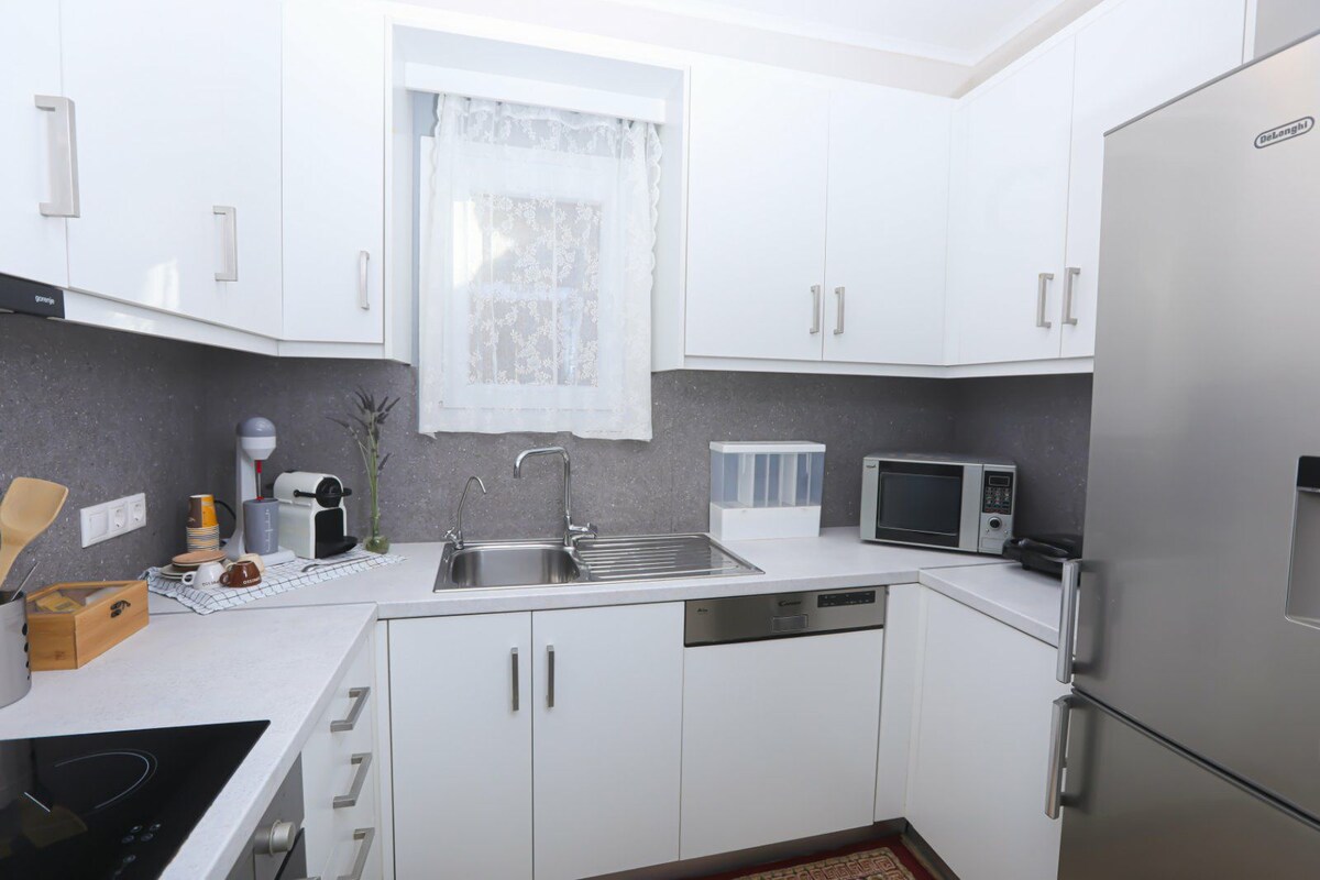 Neues stilvolles Apartment (82 m2) mit privater Terrasse & Gartennutzung in Gouvia - eine großartige Möglichkeit, die wunderschöne Insel Korfu zu erkunden. Wohnen im Grünen, gleichzeitig nur wenige Fußminuten vom Strand oder dem Yachthafen entfernt. Korfu-Stadt ist 8 km entfernt und alle Strände sind in maximal 30 Minuten erreichbar. Gouvia bietet zahlreiche Geschäfte und Restaurants, ebenso eine zentrale Bushaltestelle, falls sie nicht mit dem Mietwagen nach Korfu Stadt fahren möchten.