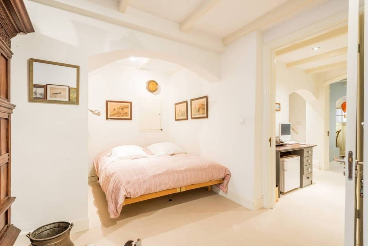 Welcome to Milkmaid, a serene sanctuary inspired by Vermeer's iconic painting. This front-facing room captures the essence of Dutch compactness and elegance. Situated in a meticulously restored 17th-century monumental building on one of Amsterdam's oldest streets, you'll experience authentic Amsterdam living just 100 meters from Dam Square-yet worlds away from the bustle. This is not just a private room with en-suite bathroom, it’s a hidden gem. Check-in from 08:00 - 19:00; room ready 2pm