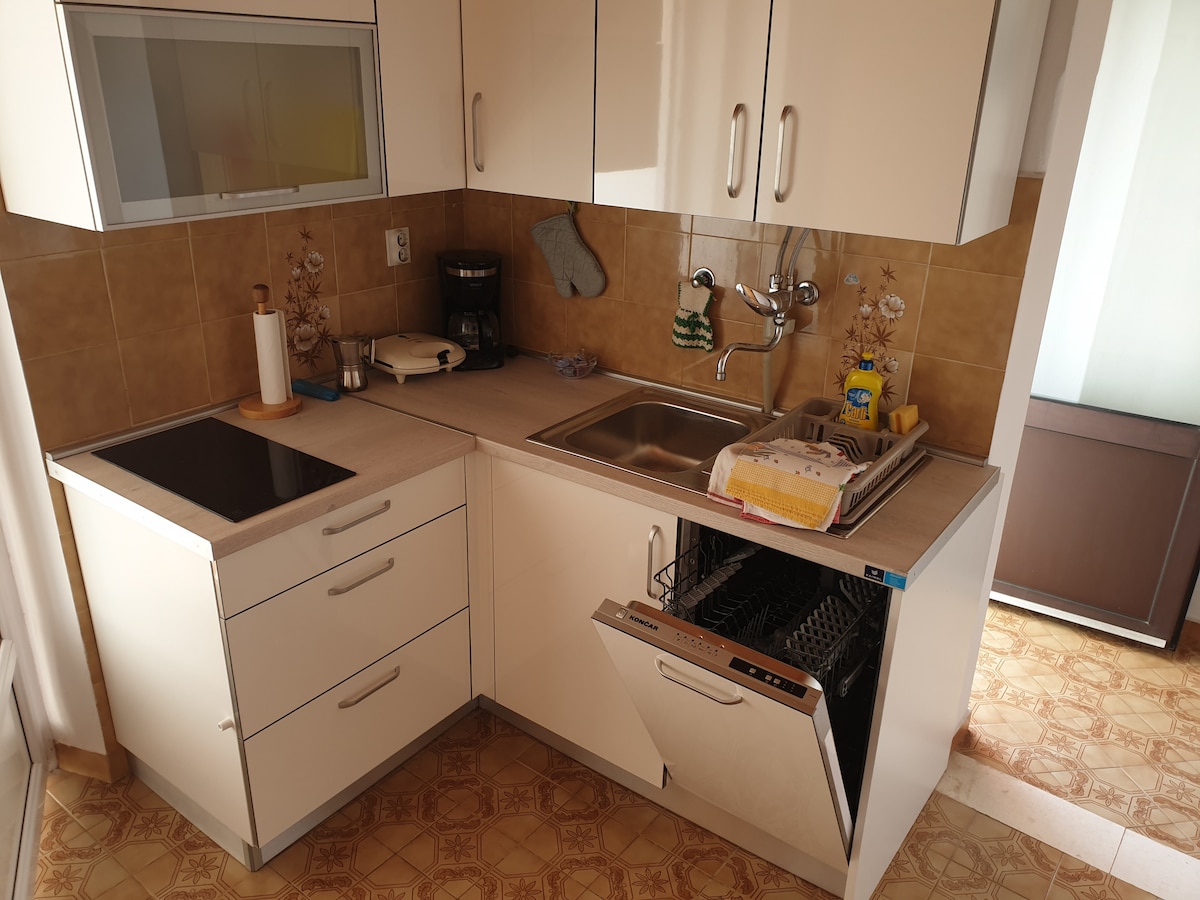 Geräumige private Wohnung mit einer Küche, gut ausgestattet für die Zubereitung von Mahlzeiten, einem eigenen Badezimmer, einem Schlafzimmer für zwei Personen und einem großen Balkon mit Blick auf das Meer, die Pakleni-Inseln und die Inseln Vis und Korčula. Der schöne Sonnenuntergang macht dies zu einem perfekten Ort, um den Tag ausklingen zu lassen. Kostenloses WLAN, Klimaanlage, ein Parkplatz, Wäsche und mehr + tolle Tipps von deinem Gastgeber (ein Einheimischer) zum Entdecken von Hvar sind ebenfalls enthalten. :) Komm und entspanne und genieße die Stadt Hvar!