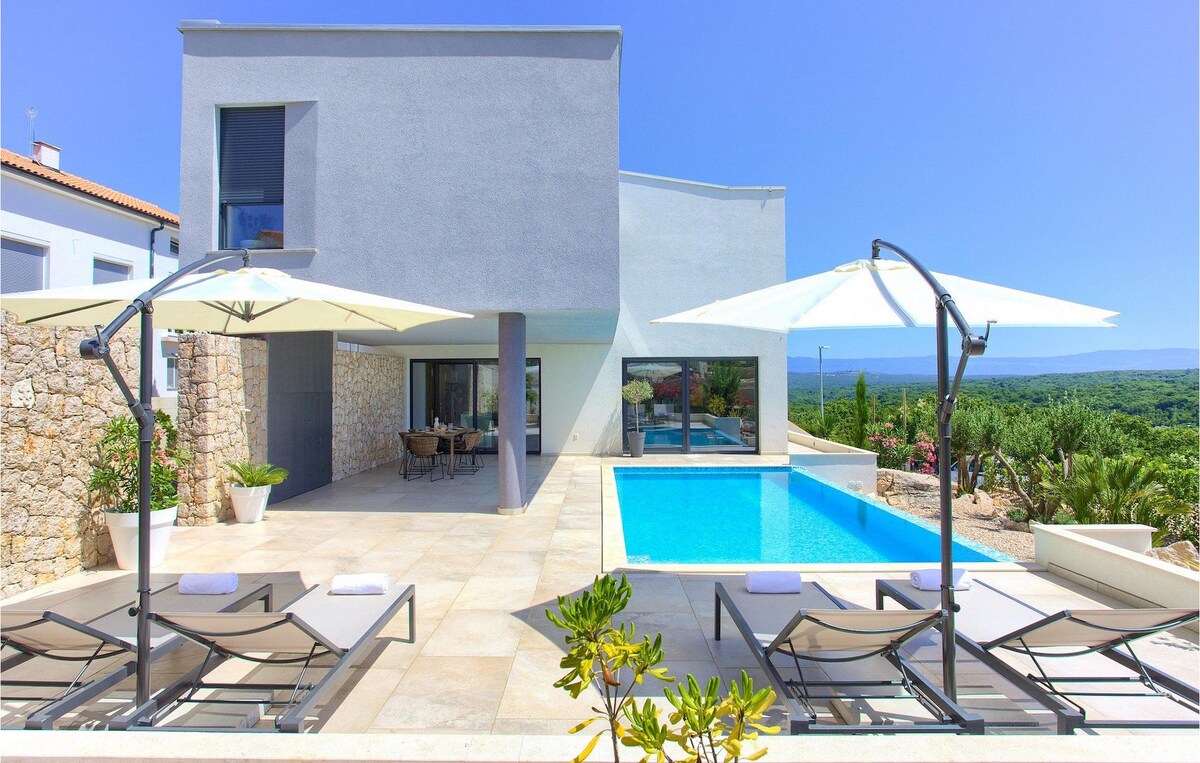Wenn Sie sich in einer ruhigen Umgebung entspannen möchten, ist die Villa Kalić genau das Richtige für Sie. Die authentische Villa Kalić befindet sich in unberührter Natur im Dorf Garica, im zentralen Teil der Insel Krk. Das komplett renovierte Haus bietet 4 Schlafzimmer, drei davon mit Bad, eine Küche im unteren Teil des Hauses und ein Wohnzimmer mit Kamin im Obergeschoss mit einem Schlafsofa. Ein zusätzliches Badezimmer befindet sich in der Nähe des Pools. Die Außenterrasse mit Grill ist ideal für sommerliche Zusammenkünfte und die Pools bieten die richtige Erfrischung.