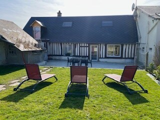Entre mer et campagne, venez profiter de cette maison en colombage, récemment retapée, offrant jusqu'à 7 couchages (2 chambres en lits de 160x200 et 3 lits en pièce pallière de 80x200. Accès tous commerces de proximité à 3 min à pied. Une rue à sens unique très peu circulante. Un jardin privatif et une terrasse pour profiter des extérieurs et se reposer. A proximité du CNPE de Paluel.