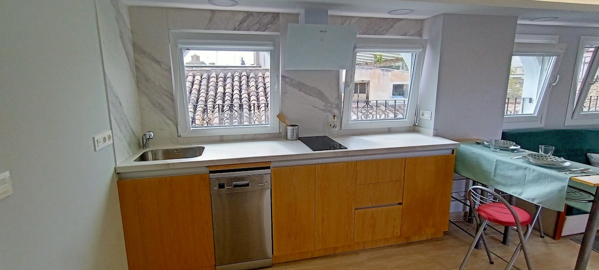 DAS PANORAMA-PENTHOUSE ist zurück! Ein sonniges, offenes Penthouse-Loft im Zentrum. Fabelhaftes Panorama der Kathedrale, der Alhambra und der Sierra Nevada... möglicherweise die beste Aussicht auf ganz Granada. Unschlagbare Lage bei km 0, nur wenige Schritte von der Kathedrale, dem Rathaus und dem Bib-Rambla-Platz entfernt und von wo aus du alle wichtigen Sehenswürdigkeiten zu Fuß erreichen kannst. Digitale Nomaden willkommen!