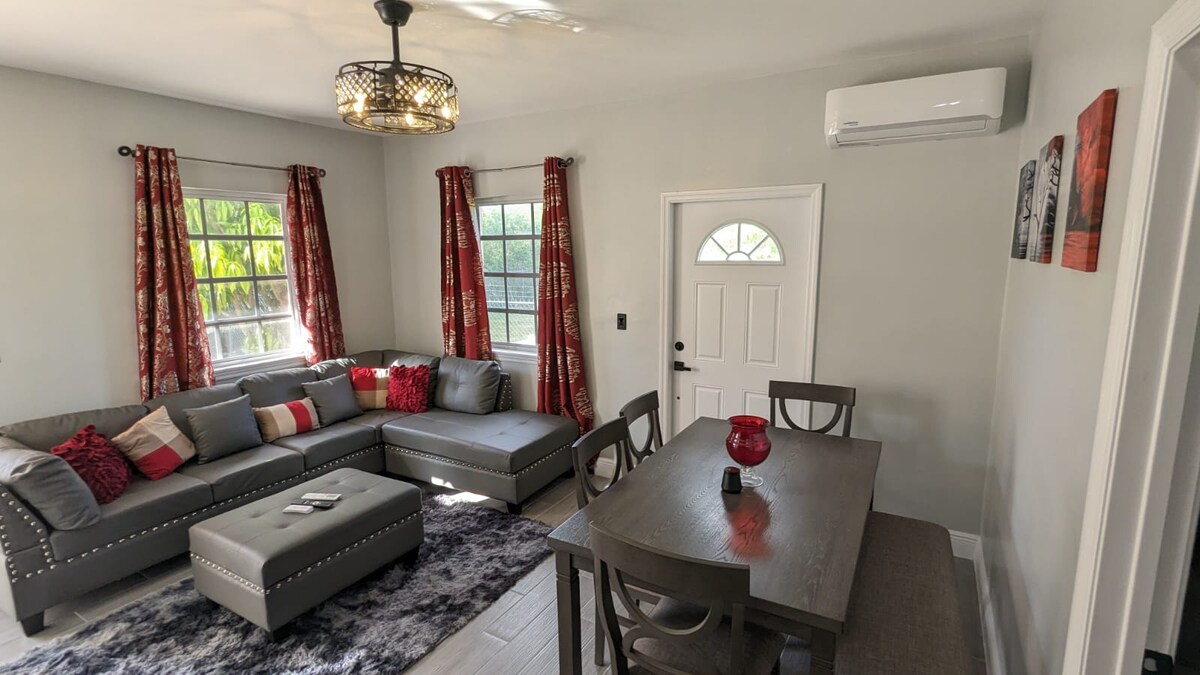 Lehne dich zurück und entspanne dich – in dieser ruhigen, stilvollen Unterkunft. Lass dies dein zweites Zuhause sein. Dieses AirBNB hat alles, was du brauchst. Wir haben auch eine Luftmatratze. Ob du die schönen Bahamas geschäftlich oder privat besuchst, dies ist der ideale Ort, um alles zu erreichen, was Freeport zu bieten hat. Nur sechs Gehminuten von einem Einkaufszentrum entfernt, das ein Lebensmittelgeschäft, einen Spirituosenladen, ein Fitnessstudio, ein Café und eine Bank umfasst. Eine schnelle 3-minütige Fahrt zum Strand und spüre den Sand an deinen Füßen. Port Lucaya ist eine 3-5-minütige Autofahrt entfernt.