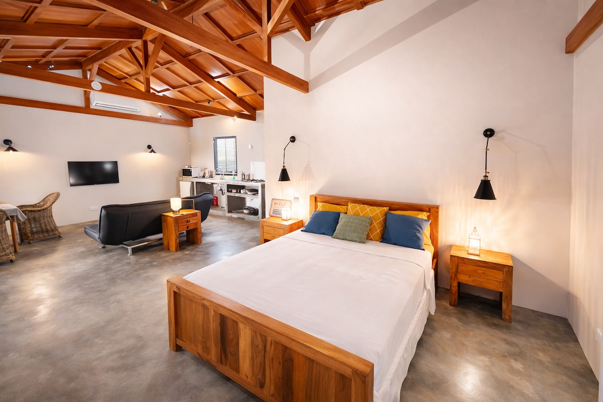 Willkommen in der Vanilla Lodge, Gastgeberin ist Jenni, eine 20-fache Superhostin! Entspanne dich in einem Kingsize-Eichenbett, koche in der voll ausgestatteten Küche und streame Netflix auf dem Smart-TV. Erfrische dich in der Stein- und Bambusdusche oder gönne dir ein Bad im versunkenen Steinbad für zwei. Schwimme im Infinity-Pool, entspanne auf Sonnenliegen und erkunde die Insel mit dem Auto. Nur 5 Minuten vom Meer entfernt, umgeben von üppigen tropischen Gärten – wache auf und höre die Vögel singen. Frühstück nicht inbegriffen.