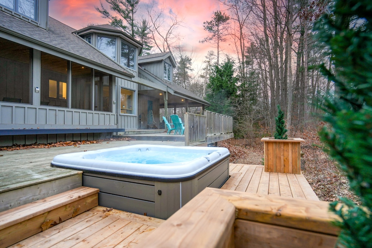 Lakefront Lodge Estate mit Whirlpool, Sauna & Strand