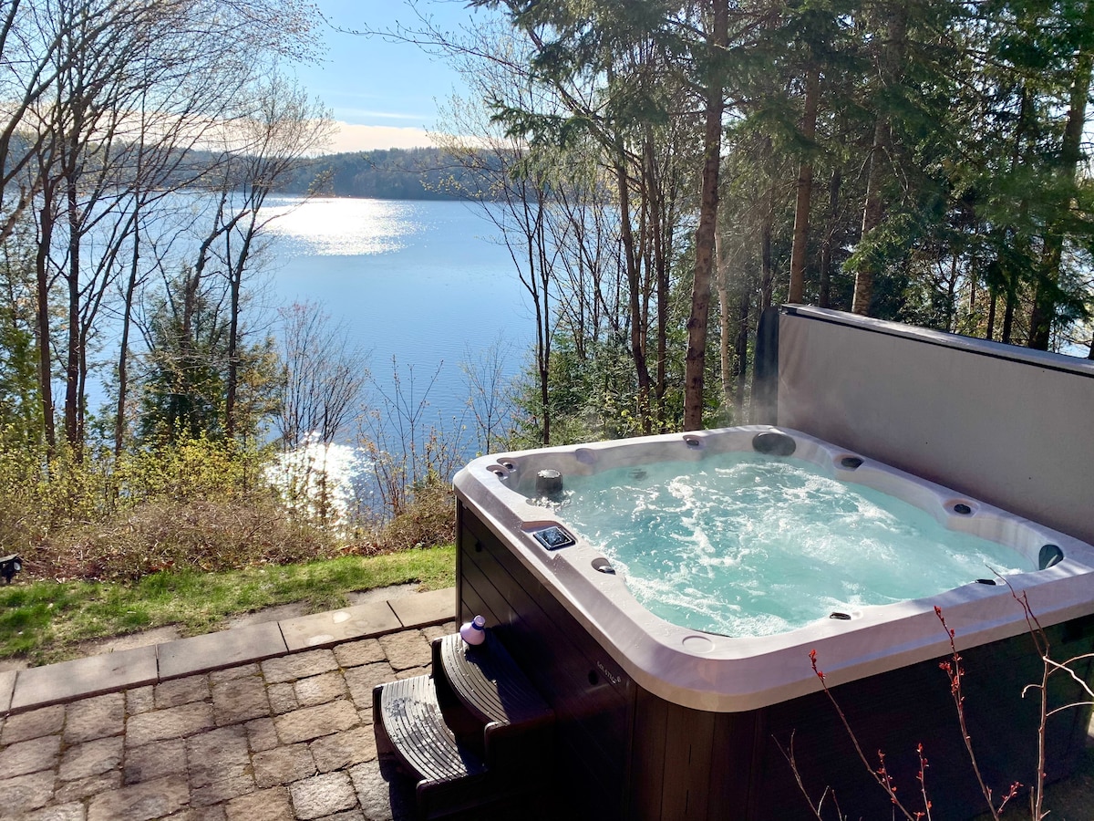Wunderschönes Chalet in der Natur in Saint-Mathieu-du-Parc. Ein Panoramablick auf den Lac Gareau, einer der schönsten Seen der Region sowie nur wenige Minuten vom Park Mauricie entfernt. Darüber hinaus haben Sie Zugang zum See mit Kajaks, Paddelbrett und mehr im Sommer. @_domainesduparc Möglichkeit, Massagen zu Hause für den Aufenthalt zu buchen. Die Unterkunft benötigt im Winter ein Allradfahrzeug. Der Panoramablick vermittelt das Gefühl, dass wir uns in der Höhe befinden