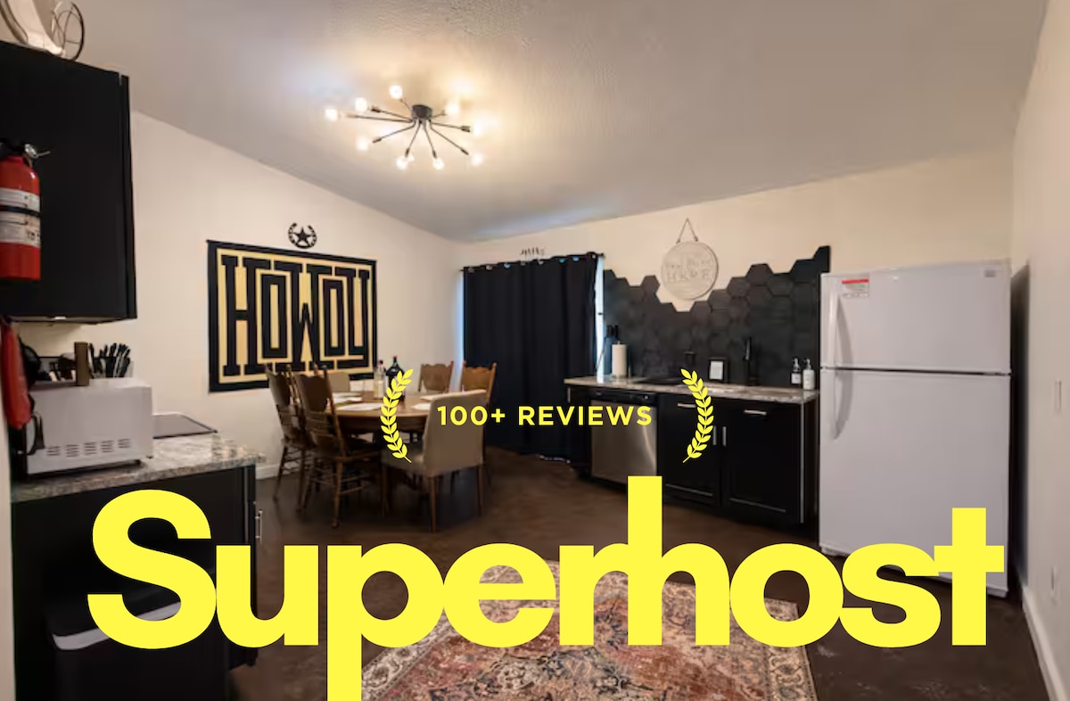 Dieses stilvolle winzige Haus liegt 5-7 Autominuten von der Innenstadt von Ft. Es lohnt sich und bietet viele Annehmlichkeiten für Gäste. Genieße alles, was Cowtown zu bieten hat, mit kostenlosen Parkplätzen, einer Feuerstelle und ergänzenden Befestigungen. Hundefreundlich, dieses gemütliche Haus verfügt über einen Fernseher mit WLAN, eingezäunt im gemeinsamen Hinterhof, begehbare Dusche, Brettspiele und eine Waschmaschine/einen Trockner, damit du dich wie zu Hause fühlen kannst. Das Viertel ist lebhaft, laut und farbenfroh, einschließlich Einheimischer, die auf Pferden reiten!