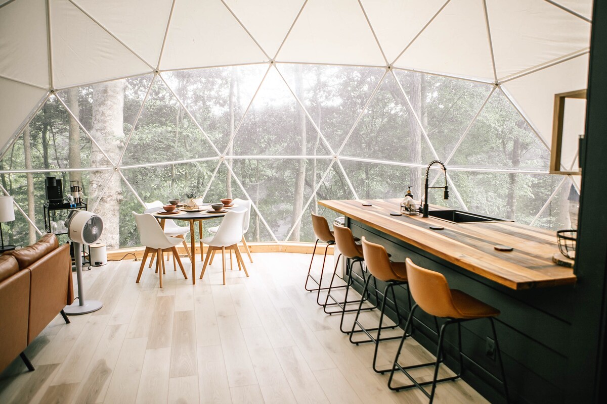 Willkommen in unserem modernen Refugium in den ruhigen Wäldern von Smithville, nur einen Steinwurf vom ruhigen Wasser des Center Hill Lake entfernt. Solace Sphere bietet eine moderne Variante des klassischen Kuppeldesigns mit einem Schlafzimmer-Layout mit einem Loft, ergänzt durch eine verjüngende Wasserfalldusche und erstklassige Geräte für deinen Komfort und Bequemlichkeit. Wir befinden uns 1-1/2 Stunden von Nashville und 3 Meilen von Pate's Ford Marina Bar and Grill entfernt. Wir hoffen, dass du deinen Trost findest.