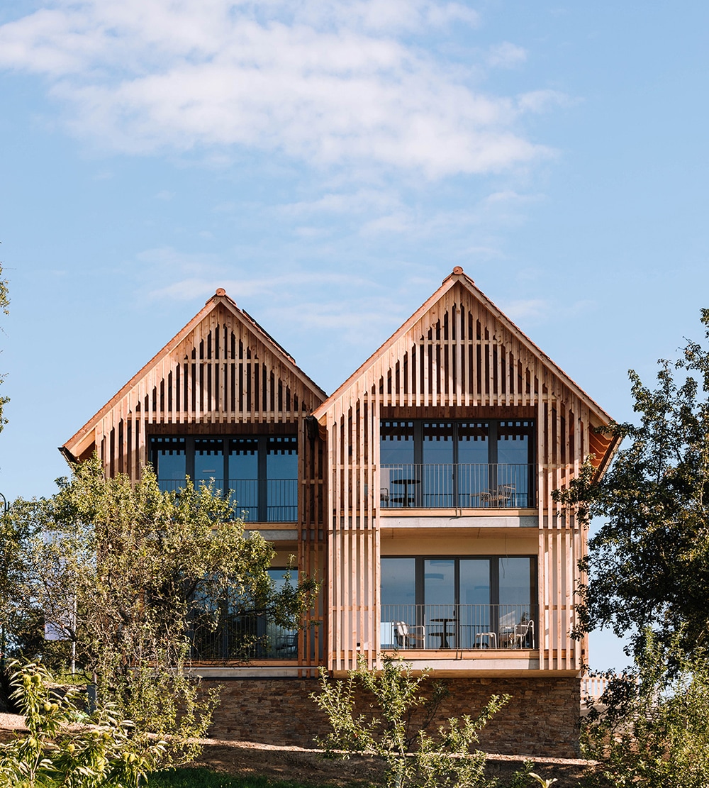 Unsere Penthouse-Appartements am Weinberg Hochgrail bieten außergewöhnliches Flair. Hier trifft zeitgenössische Architektur auf traditionelle Materialien, eingebettet in die pittoreske Kulturlandschaft des Weinbaus. Die offene Gestaltung, freistehende Möbelinseln und naturbelassene Holzoberflächen bieten ein einzigartiges Raumgefühl. Direkt an der Schilcher Weinstraße gelegen, sind zahlreiche Buschenschenken und Weingüter fußläufig zu erreichen. Hochgrail – Hochgefühl – Luxus für zwei.