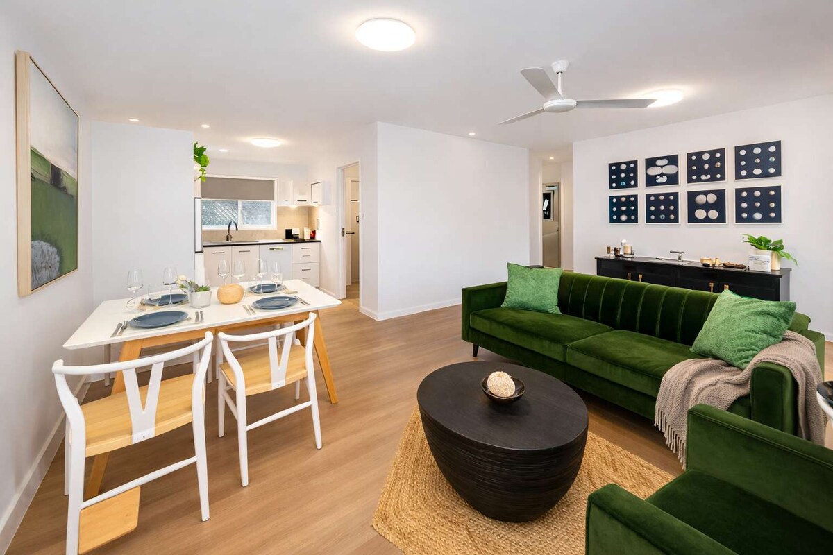 Gatehouse by the Gardens ist eine private, voll ausgestattete Wohnung, in der du nur mit deinem Koffer ankommen musst; alles andere erwartet dich. Entspannen Sie sich im Badezimmer im Stil eines Nasszimmers mit Regen- und Handbrausen und genießen Sie dann Ihr kostenloses kontinentales Frühstück im klimatisierten Wohnbereich oder auf der privaten tropischen Terrasse mit Grill, großzügigen Sitzgelegenheiten und friedlichem Blick auf den Garten. Es ist der perfekte Ausgangspunkt, um sich auszuruhen, aufzutanken und Townsville zu erkunden.