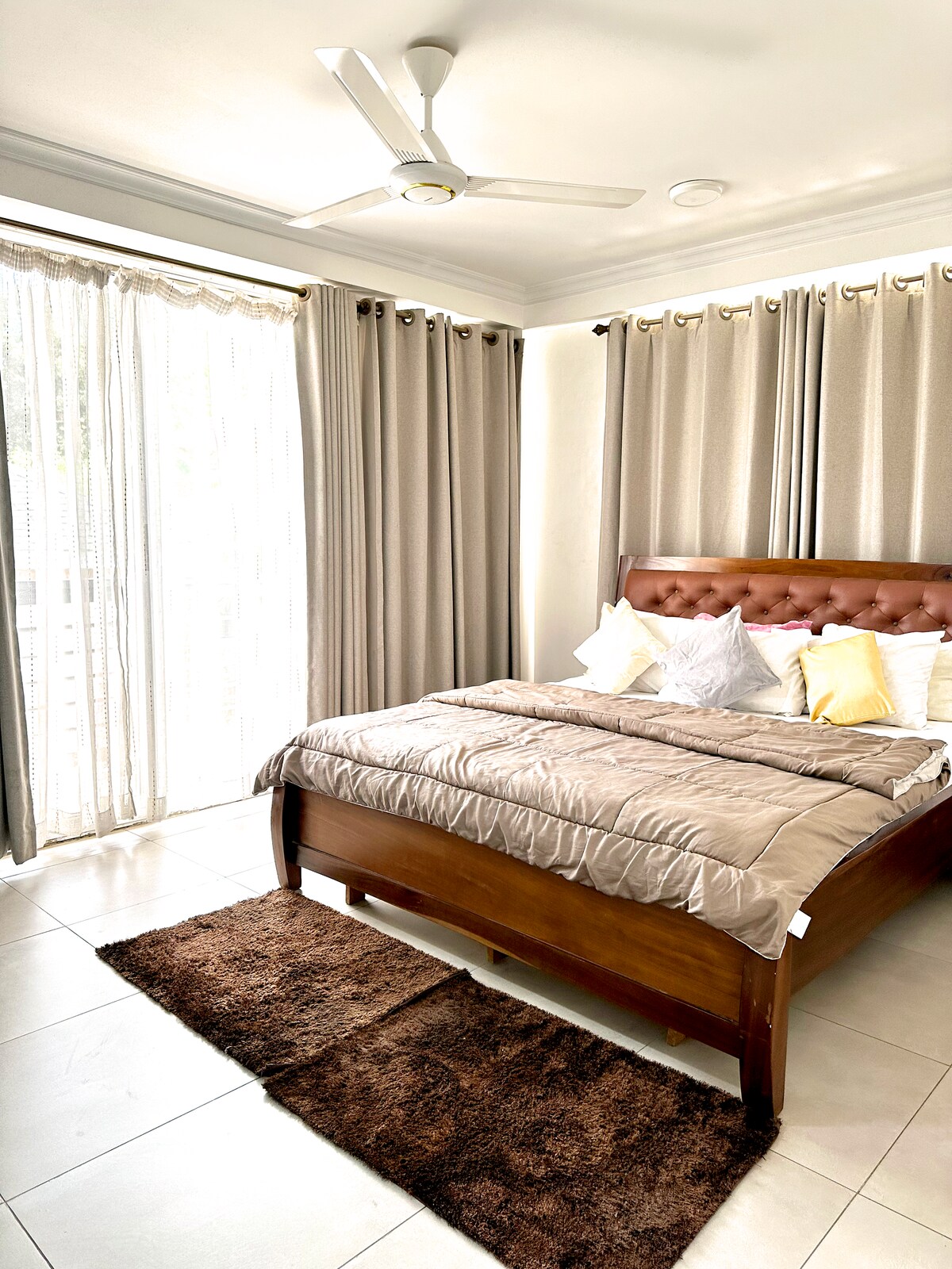 Enjoy a stylish experience at this serene and centrally-located place and 12 minutes drive from the airport. Each en suite bedroom is set in a beautiful aesthetic for your relaxation. It features a stylish & minimalistic living & dining area & fully equipped with all the modern amenities you need to feel at home; high-speed Wi-Fi, flat-screen TVs with cable channels, air conditioning in every room, with a fully equipped & spacious kitchen with everything you need to prepare your favorite meals.
