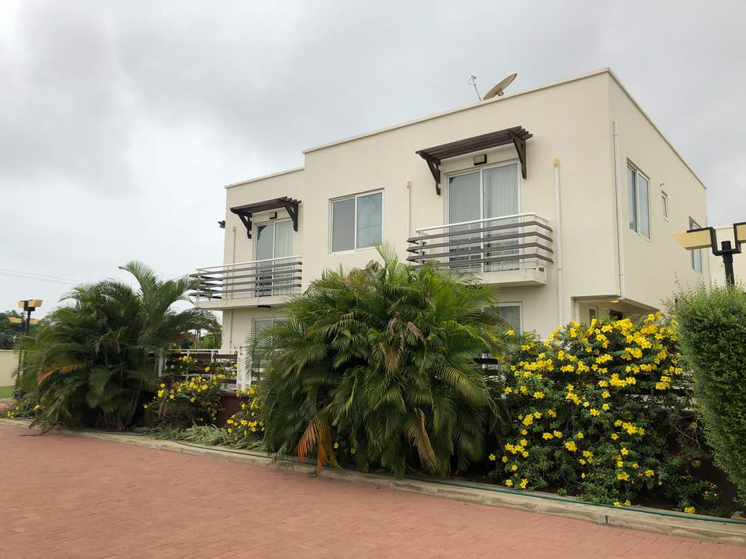 Open Heavens Ntriwaa es ist ein voll möbliertes Haus mit vier Schlafzimmern mit hochmodernen Einrichtungen in einem der Mittel- bis Oberklasse Bereiche in Accra ausgestattet. Es gibt auch einen gemeinsamen Pool. Die Einrichtung befindet sich in einer geschlossenen Wohnanlage mit 24-Stunden-Sicherheitsdienst und nur wenige Gehminuten von der Polizeiwache entfernt. Auch mit Internet und einem Hausmeister ausgestattet, um sicherzustellen, dass Ihre Umgebung gut gepflegt sind. Es ist in einer ruhigen und ruhigen Nachbarschaft für Ihre Entspannung.
