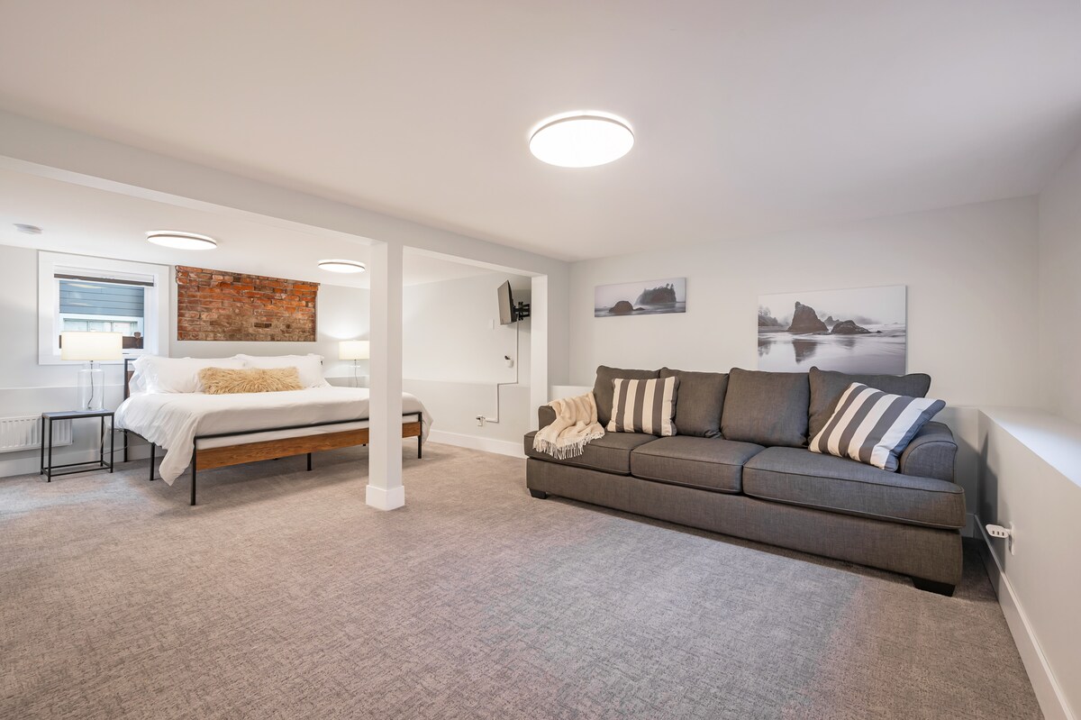 700 Quadratfuß große MIL-Wohnung, perfekt für 1–2 Erwachsene oder eine kleine Familie, die einen Rückzugsort in einem lebendigen Viertel von Seattle suchen, nur einen Block vom Green Lake Park entfernt. Schönes, von einem Architekten entworfenes, voll ausgestattetes Kellergeschoss mit Tageslicht verfügt über Beton-Fußbodenheizung, eine voll ausgestattete Küche, eingebaute Walnussregale und eine private Waschküche. Geräumiges Queensize-Schlafzimmer mit bequemem Queensize-Schlafsofa im Wohnzimmer. Offenes Design mit großen Fenstern bietet durchgehend natürliches Licht. Zugang zur Außenterrasse und zum Grill. Schöner Ort zum Entspannen und Unterhalten.