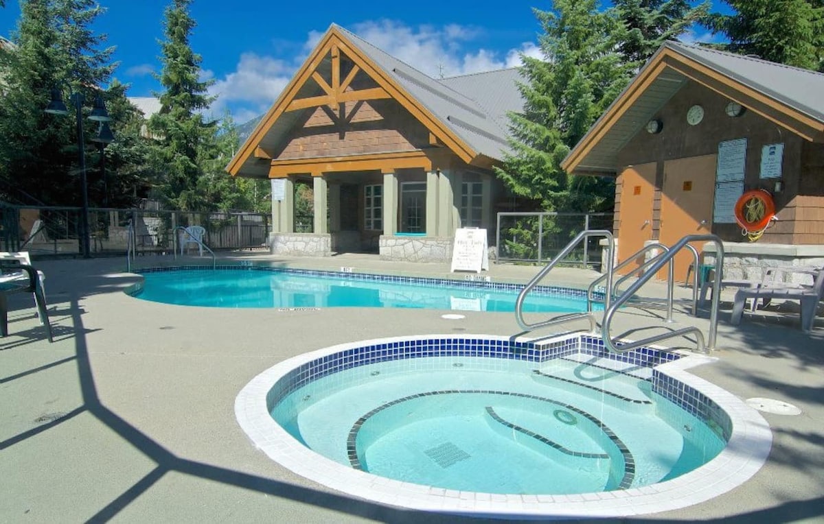 Welcome to your mountain oasis. A 1 min walk from the Blackcomb lift! Our modern condo is a bright, spacious 1 bedroom with wrap around windows for perfect tree-lined and mountain views. Look right up Whistler mountain while sipping coffee from your kitchen table! The suite has it all: - king bed - sofa bed - full kitchen - soaker jet tub - Keurig - Bose speaker - central A/C - upgraded July 2025 The building has a gym, laundry, pool and outdoor hot tub.
