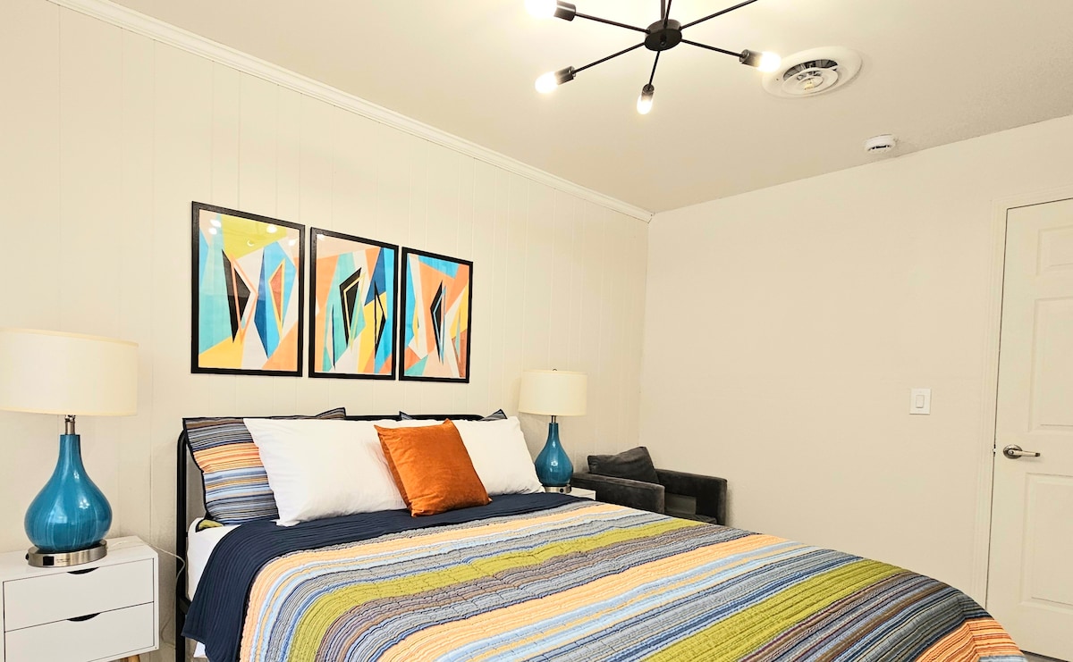 *Bitte lies die vollständige Beschreibung der Unterkunft – diese Suite ist komplett privat, aber auch die untere Ebene unseres Hauses.* Gemütliche Ziegelranch mit neu renovierter, geräumiger unterer Ebene mit Teichblick. Diese private Gästesuite verfügt über ein Schlafzimmer mit einem kompletten Bad, einer Waschmaschine und einem Trockner, einem Wohnzimmer mit einem ausziehbaren Schlafsofa, einem Fernseher, einer Küchenzeile, einem Essbereich, einem Lesebereich, einem kleinen Spielzimmer für Kleinkinder und einem Büroraum. Weniger als 20 Autominuten vom Baptist Hospital und Dtwn Winston, 25 Minuten von HP und 30 Minuten von GSO entfernt.