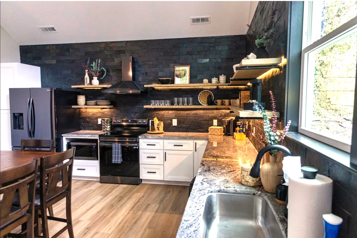 Willkommen im LunaZul, das im Juni 2024 komplett renoviert wurde und bereit ist, Ihr nächstes Abenteuer zu beherbergen! Egal, ob Sie sich nach dem Komfort von zu Hause oder dem Gefühl eines gemütlichen Ausflugs in die Natur sehnen, LunaZul bietet das Beste aus beiden Welten. Es liegt auf einem großen Grundstück mit einer Feuerstelle und einer Terrasse und ist perfekt zum Entspannen oder Erkunden. Genießen Sie den schnellen Zugang - nur 5 bis 15 Minuten zu Krankenhäusern, Museen, Parks, Seen, Restaurants, Lebensmittelgeschäften wie Harris Teeter, Tankstellen und den wichtigsten HWYs 1-840. Dein Rückzugsort in Greensboro beginnt hier!
