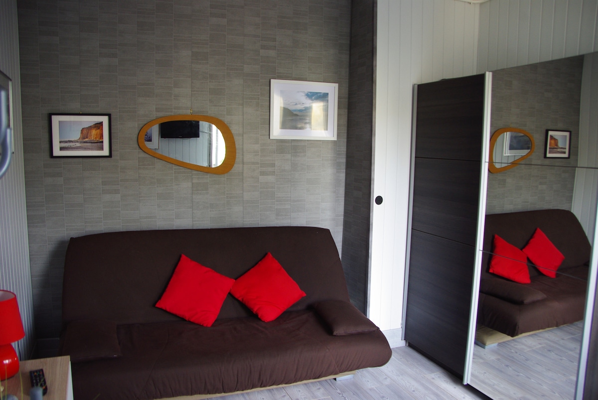 Studio von 21 m2 , direkt im Zentrum von Dieppe ( 3. Stock ohne Aufzug ), ideal für 2 Personen. Komplett renoviert , sehr hell , Fußgängerzone , in der Nähe des Meeres und der Geschäfte ( Supermarkt 7 Tage die Woche am Fuße des Gebäudes geöffnet) Kostenpflichtiger Parkplatz im Erdgeschoss der Wohnung, der bei der Ankunft oder Abreise bequem ist ( Preis auf dem beigefügten Foto) Kostenlose Parkplätze am Meer 10 Minuten zu Fuß Studio: Hauptraum mit Sofa "Schlafsofa" Matratze 17 cm , Einbauküche und Bad WC