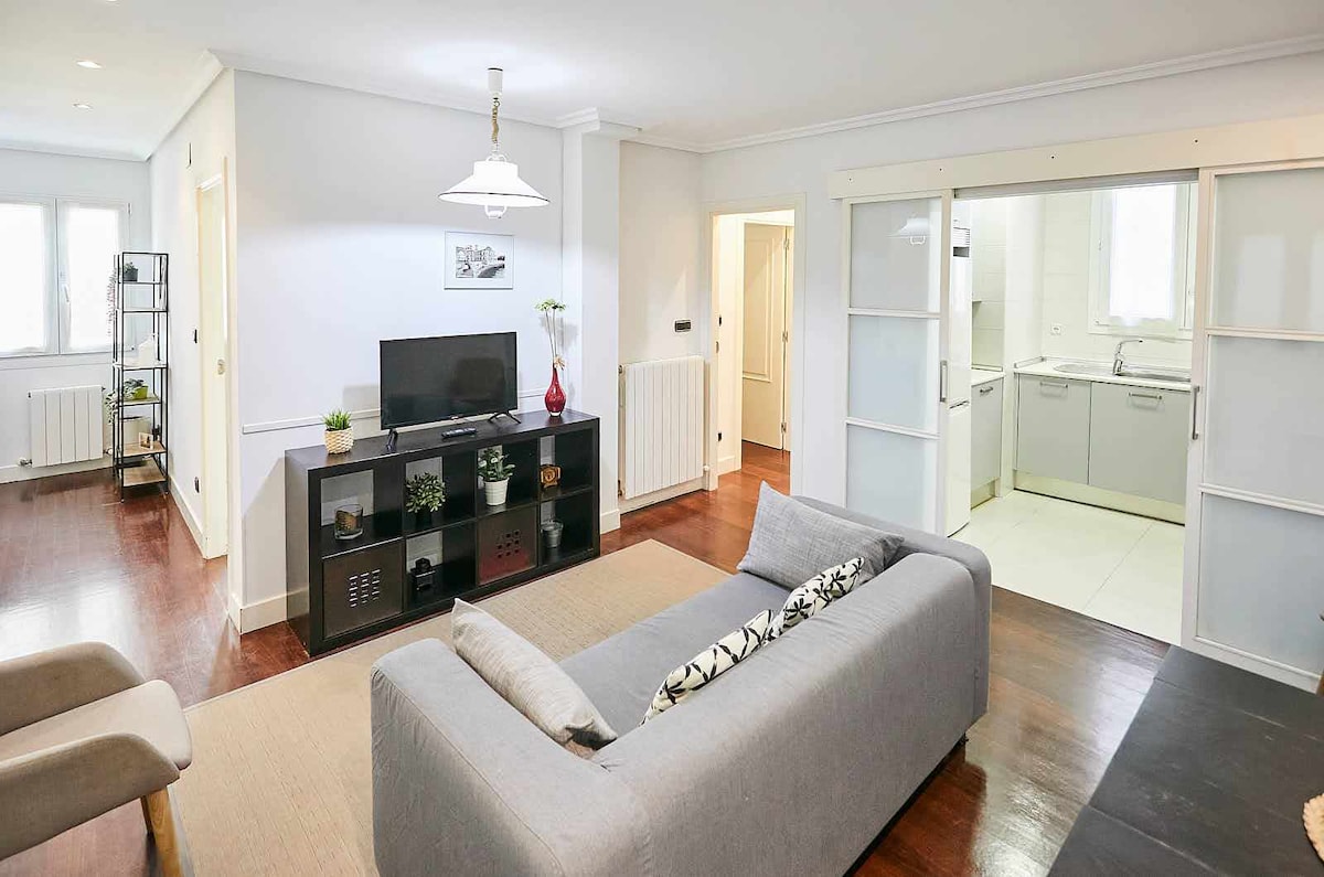 • Walk score99 (Zugang zu Restaurants, Cafes und dem Strand). • Klimaanlage. • Selbst-Check in Option. • 75 m² • WLAN 100 Mbpm. • Sehr hell, alle Außenbereiche. • Voll ausgestattete und ausgestattete Küche. • Völlig sicheres Viertel. - Waschmaschine und Spülmaschine. • Im Stadtzentrum. . 10 Minuten Fußweg zum Strand La Concha . Es ist obligatorisch, den Ausweis (Ausweis oder Reisepass) in Übereinstimmung mit dem Recht der spanischen Regierung vorzulegen.