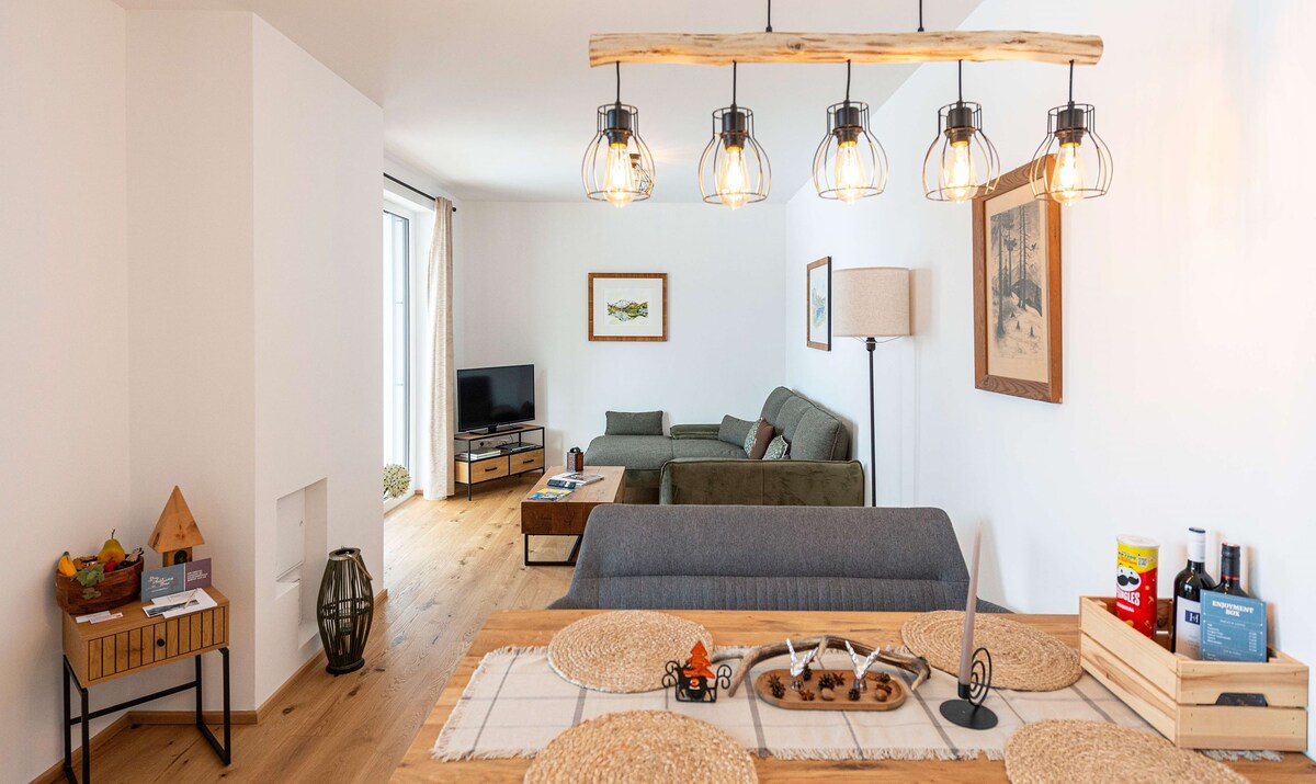 Neu ausgebautes Appartement am Bauernhof, in Südlage mit großer Dachterasse, für 2 bis 4 Personen, 55m2, modern und stilvoll eingerichtet. Toll für einen Familienurlaub, für Freunde, die gemeinsam verreisen und für alle, die Entspannung in der Natur suchen und am Landleben teilhaben wollen.