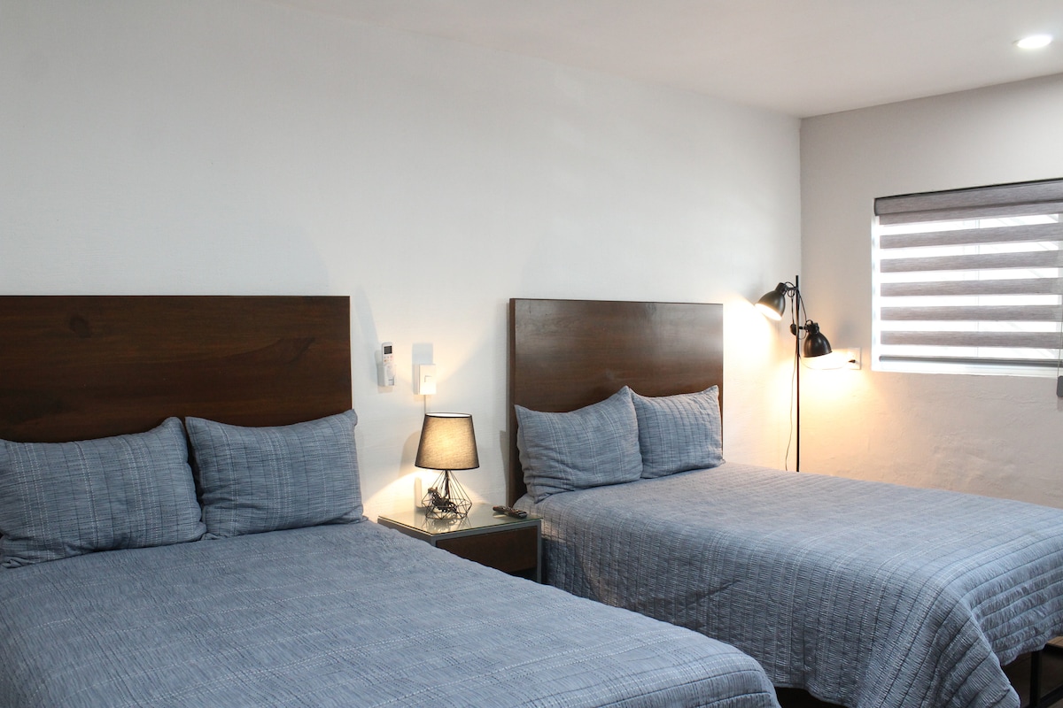 This stylish place has everything you need to have a comfortable stay. Enjoy privacy & tranquility steps from Expo Guadalajara. 🚭No smoking/no vaping Places of interest -Downtown Guadalajara 20 min by car -Tlaquepaque 20 min by car -Plaza la Perla ( mall and restaurants) 15 min -Plaza del Sol 8 min -Chapultepec (rest. & bars) 15 min -Chapalita (rest. & bars) 12 min Self service Laundry (extra cost) Free baggage storage from 7am Complimentary coffee 24/7 Room cleaning on demand (extra cost)