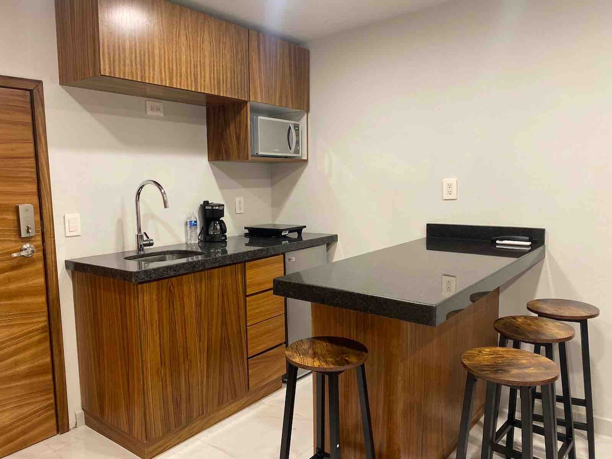 -22nd floor swimming pool -Beautiful gym with city views -Fully equipped for long stays -Parking available (at additional cost) - Housekeeping service: Once a week for reservation of +7 nights This deluxe studio with a balcony has everything you'll need for your stay. Located in a brand-new luxury tower in the Providencia neighborhood, near the Midtown Jalisco shopping mall.