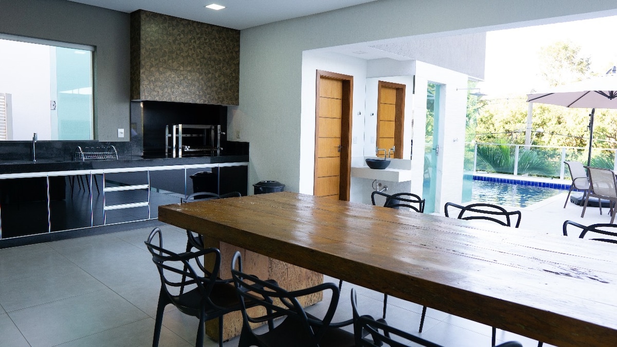 Elegantes Haus, perfekt für Gruppenreisen (bietet Platz für bis zu 19 Personen) 🏡Casa Nova und gut eingerichtet in Escarpas do Lago 📍Tolle Lage und sensationelle Aussicht ❄Klimaanlage in allen Suiten. 🚿7 Suiten (Master-Suite mit Whirlpool) 🛜Drahtloses Internet gratis 🛁Beheizter Whirlpool (Gasheizung) Beheizter Infinity🏊🏻 Pool (Solarheizung) 🧖♂️ Sauna 🥩Grill 🍽 Bestechung 🍳 Töpfe 🥂 Schalen 🖥Wohnbereich - mit TV