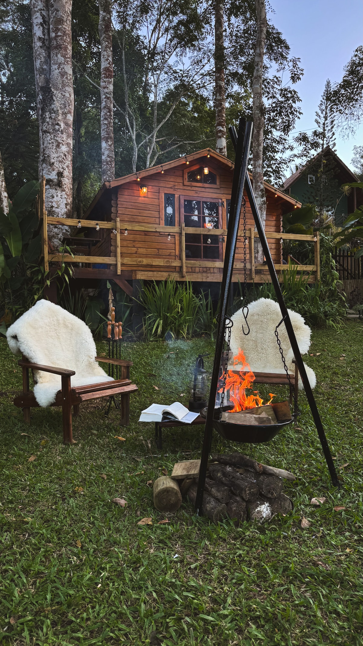A cabana está localizada a 6 km do centro de Guaramiranga, a 900 m das cachoeiras e a 150 m de restaurantes, cafés e mercadinho. Informações importantes: não dispomos de cozinha; apenas sanduicheira e cafeteira elétrica 3 Corações, apropriado para lanches. A cabana possui banheiro reduzido. Spa com jacuzzi não incluso; contratação opcional por R$ 300. Lareira (acendimento pelos funcionários), decoração romântica e café da manhã são cobrados à parte e devem ser solicitados antes da hospedagem.