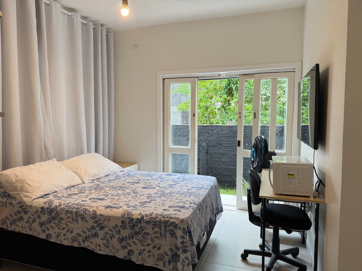 WIR STELLEN KEINE BETT- UND BADEWÄSCHE FÜR DIESEN BETRAG ZUR VERFÜGUNG. WENN DU SIE BENÖTIGST, SIEHE DIE ZUSÄTZLICHE GEBÜHR. Diese Wohnung wurde liebevoll eingerichtet, um dich willkommen zu heißen. Es verfügt über 1 Schlafzimmer mit einem internen Balkon und einem Moskitonetz, um einen guten Schlaf zu gewährleisten, mit 1 Doppelbett, 1 Einzelbett, 1 Einzelbodenmatratze und 1 Doppelschlafsofa im Wohnzimmer! Küche mit allem ausgestattet, was Sie brauchen! Wir akzeptieren nur kleine Haustiere. Deckenventilatoren im Schlaf- und Wohnzimmer Mit WLAN-Internet