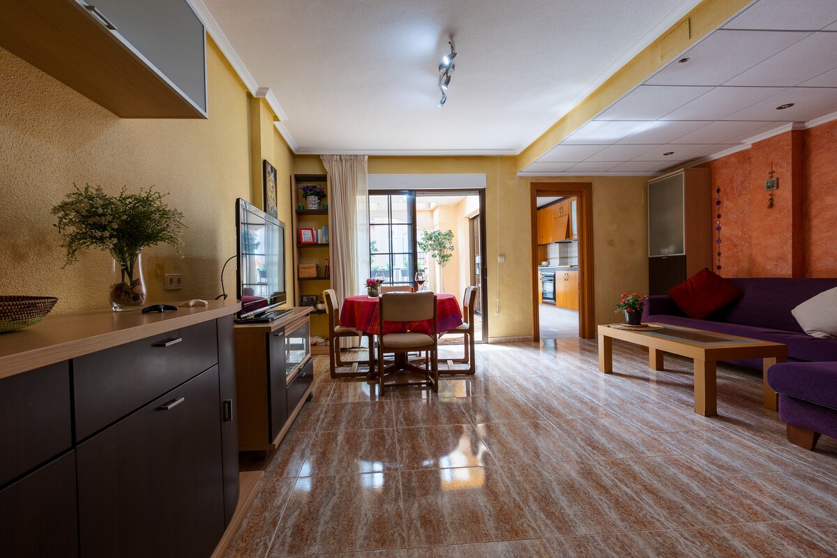 Ausgezeichnete Wohnung befindet sich im begehrtesten Viertel der Stadt, mit Parkplatz in der Garage, Klimaanlage, Internet 300 Mb, WLAN kostenlos, Smart-TV. Nur 50 Meter von den Stränden mit feinem weißem Sand und einer Promenade entfernt. Es liegt in der Nähe aller Dienstleistungen, des Supermarkts Mercadona, anderer Geschäfte, Restaurants, Bars, des spektakulären Parks „Reina Sofía“ und des großen Pinienparks „Alfonso XIII“ zum Wandern oder Radfahren, Tennisplätze und des städtischen Swimmingpools.