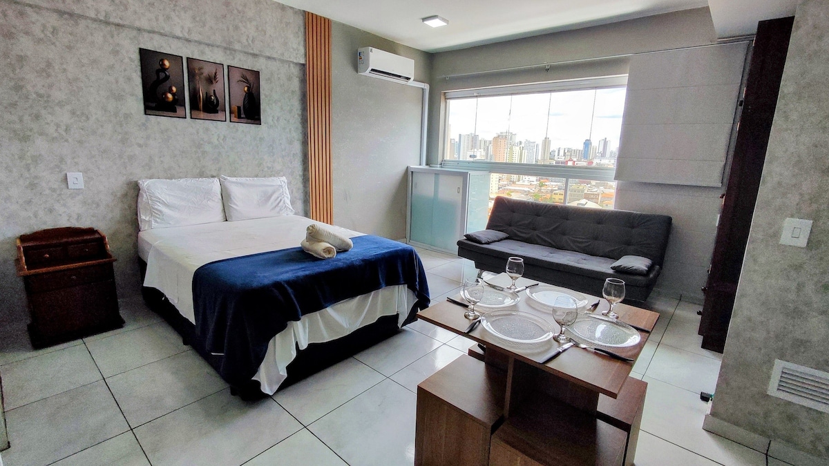 Modernes Studio in einer hochwertigen Eigentumswohnung mit allem griffbereit! übernachte in einem kompletten Studio, in einer anspruchsvollen Wohnung mit einem Mini-Einkaufszentrum voller Annehmlichkeiten. Hier findest du alles in der Nähe: Apotheke, Cafés, Restaurant und sogar rund um die Uhr Markt neben dem Gebäude! Ideal für diejenigen, die Komfort, Praktikabilität und Sicherheit suchen, sei es für die Arbeit oder die Freizeit.