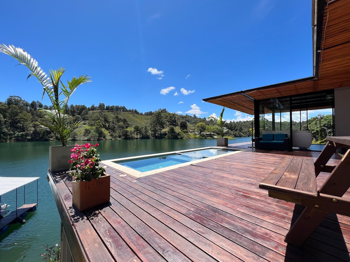 Our concept is privacy and comfort in the middle of nature, each room has a high standard king bed for your comfort, all rooms have a direct view of the lake, balcony and private bathroom; the jacuzzi located at the top of the mountain under the imposing eucalyptus trees . You will enter to the house through the roof, to findh a wonderful view of the lake, we have .created tailor-made experiences, traditional cuisine, a chef, water activities, and our spa. Paddle boards and canoe are included