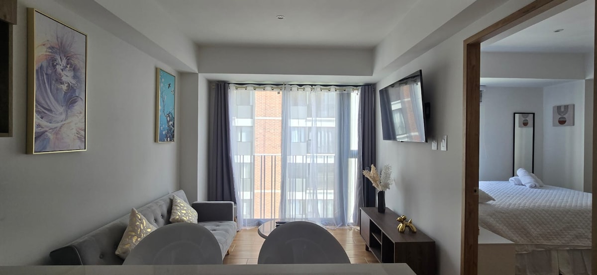 Charmante neue Wohnung, im 7. Stock von QUO im Herzen von Zone 4 und 4 Grados Norte, kürzlich renovierte und zentrale Nachbarschaft. Die Wohnung ist geschmackvoll eingerichtet und möbliert und bietet neben ihrer privilegierten Lage in diesem trendigen Viertel mitten in der Stadt die Möglichkeit, ein gut geplantes urbanes Leben mit allem zur Hand zu erleben, in Räumen mit gemischter Nutzung. Mit Supermarkt La Torre, Apotheke, SPA, Schönheitssalon, Restaurants, Bars und SmartFit-Fitnessstudio im selben Gebäude.