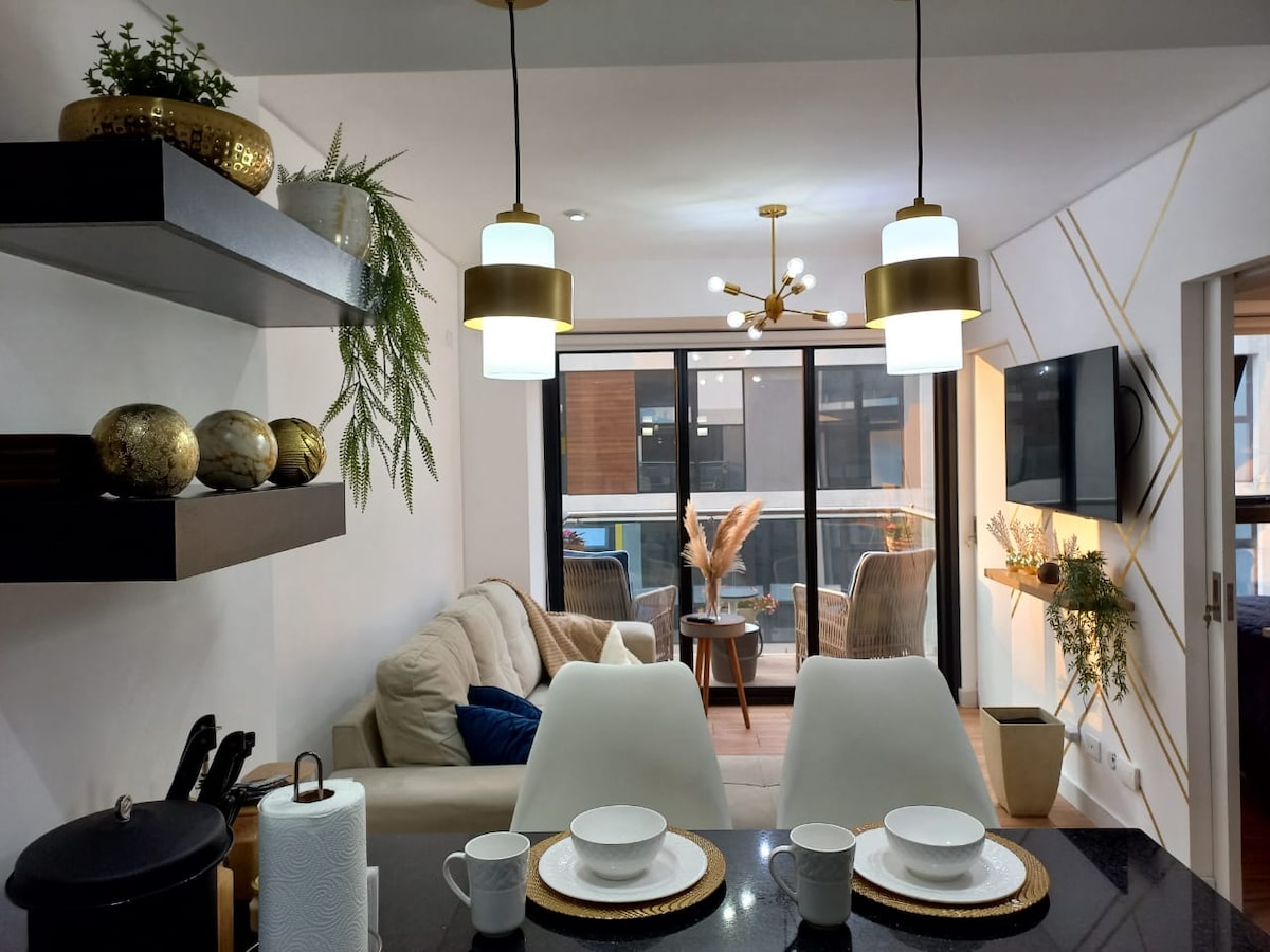 Elegante und moderne Wohnung/Suite in ausgezeichneter Lage zu Einkaufszentren, Finanzplätzen, Restaurants und Spaß im Wohnbereich, du kannst dich zu Fuß oder mit dem Fahrzeug mobilisieren. Alles, was du dir wünschst, ist nur wenige Minuten von unserem Haus entfernt. Genieße einen spektakulären Blick auf die Diagonale 6, frühstücke vom Balkon aus oder ruhe dich in einem komfortablen Queensize-Bett aus, Ohrringe ? Du hast einen modernen Holzschreibtisch mit Lampe, wenn du vorankommen möchtest.