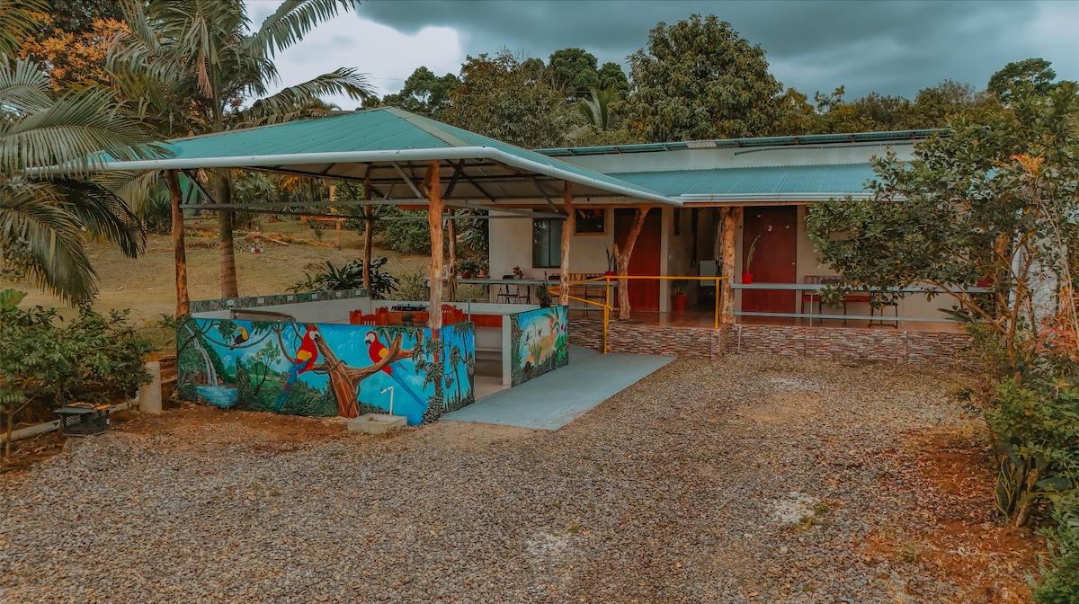 Willkommen im Dschungel! Erlebe das „Dschungelleben“ in dieser stilvollen und einzigartigen Dschungelanlage. Wache mit unglaublichen Sonnenaufgängen, köstlichem costa-ricanischem Kaffee und den Geräuschen von Brüllaffen und tropischen Vögeln auf, die ihren Tag beginnen. Du musst nicht in überfüllte Parks reisen. Dieses 105 Hektar große private Reservat und die Viehfarm verfügen über Naturpfade, Seen, einen Fluss und Wildtiere, die du beobachten kannst. TÄGLICHE GRUNDREINIGUNG, TOURPLANUNG UND TÄGLICHES FRÜHSTÜCK INKLUSIVE.
