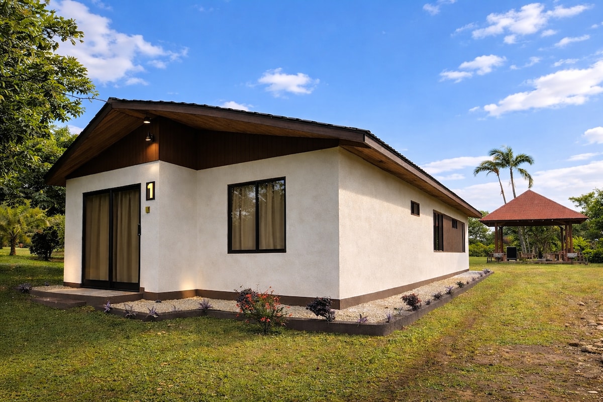 Te mostramos el secreto del Monte el Jilguero, Rancho Los Tucanes. Una pequeña cabaña ideal para familias con amplios y exuberantes jardines privados, inmersos en la naturaleza. Oculta dentro de una finca familiar rodeada de ríos, con senderos propios, árboles frutales que en temporada de cosechas disfrutas de ellos. Frente a la cabaña se encuentra un lago con patos libres, que puedes darles de comer y en el puedes pasearte en un pequeño bote. A 1 hora de Fortuna, Liberia, Catarata Río Celeste