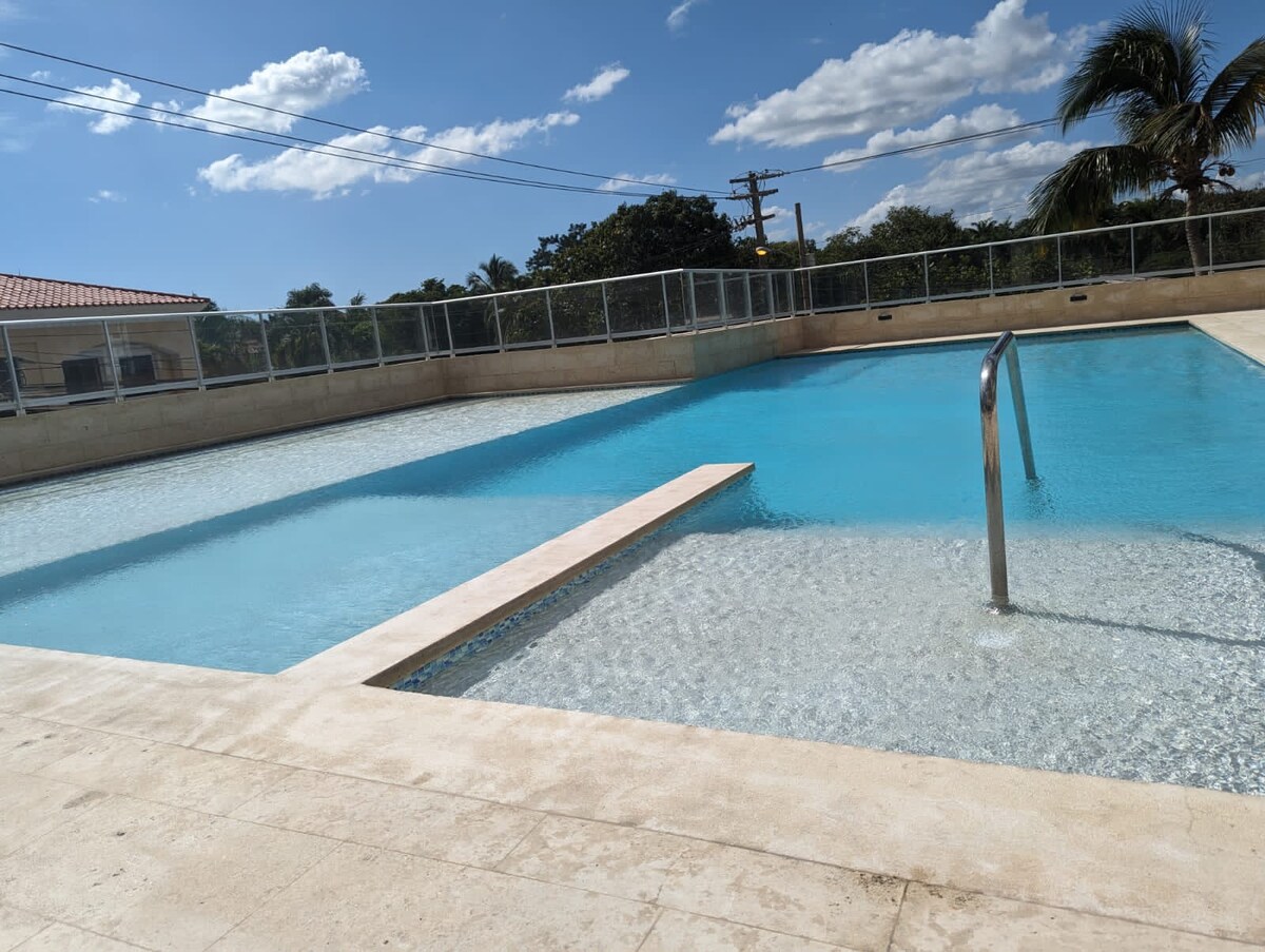 Disfruta de esta relajante experiencia en nuestro apartamento frente al mar, rodeado de amplios espacios de recreación y tranquilidad, este apto es el lugar perfecto para quienes bucan comodidad y belleza en su próximo destino frente al mar. Podrás tener acceso a la playa de Juan Dolió a 5 min caminando. Áreas comunes: • Piscina • Jacuzzi • Lobby • Gazebo • Cancha de voleibol A 10-15 minutos en coche del Malecón, Jumbo, el estadio de béisbol Tetelo Vargas y la Zona Franca.